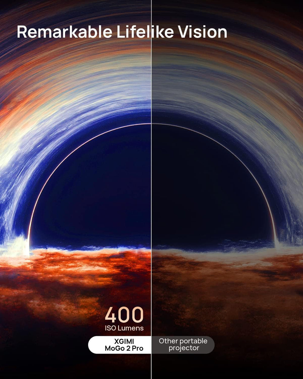 - Lebensechte Vision:Beamer mit 400 ISO-Lumen Integrierter D65-Farbtemperaturstandard, der von Hollywood übernommen wurde, und ein DCI-P3-Farbraum von 90 %, der alle Farben in brillanter, lebensechter Detailtreue wiedergibt.