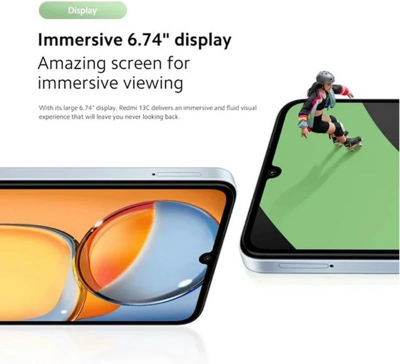 - Immersive 6.74" display: Amazing screen for immersive viewing With its large 6.74" display, Redmi 13C delivers an immersive and fluid visual experience that will leave you never looking back.