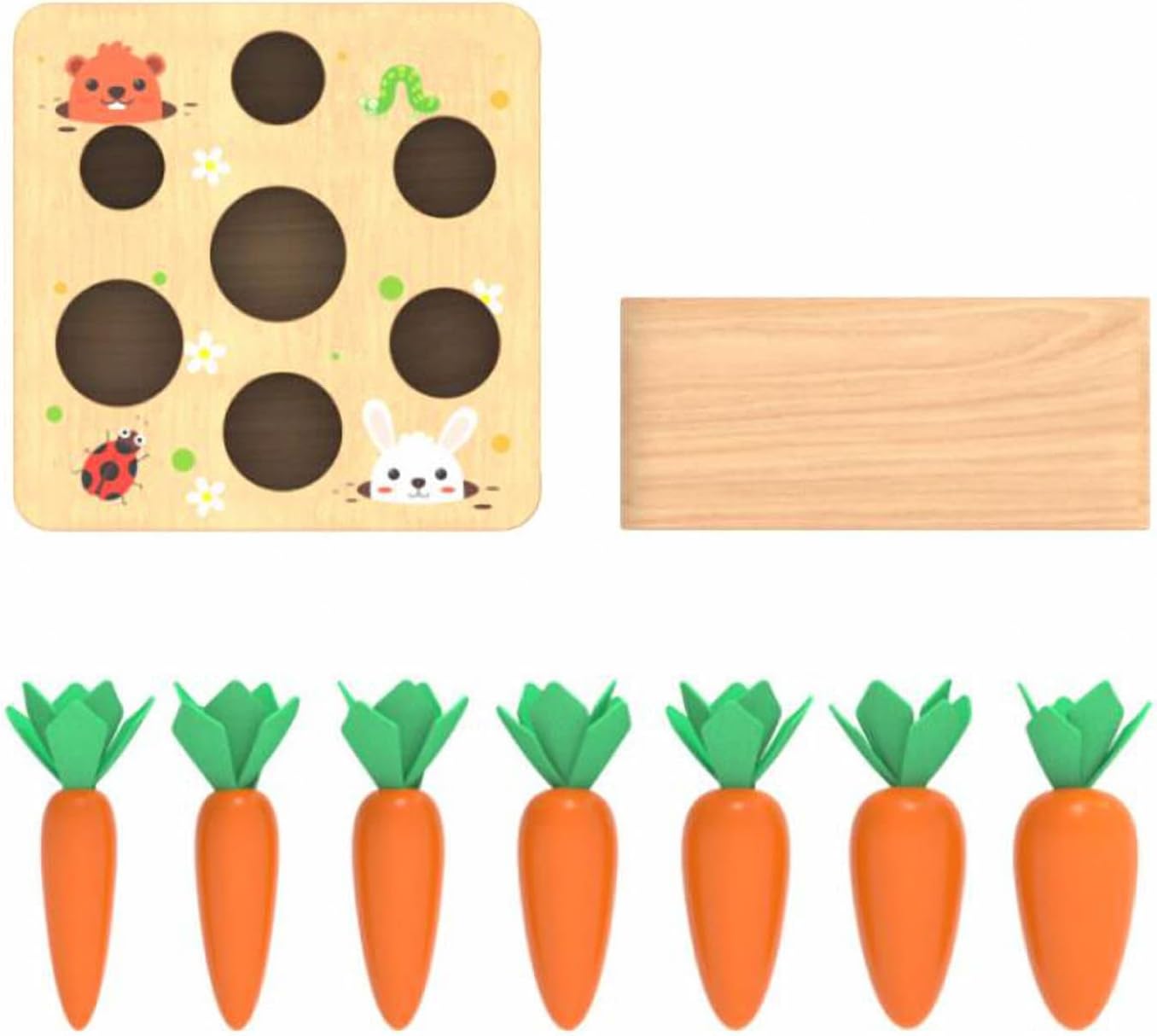 • Sortierspiel: Ihr Baby muss die Grösse der Möhren erkennen, um sie wieder in den Steckplatz einsetzen zu können.