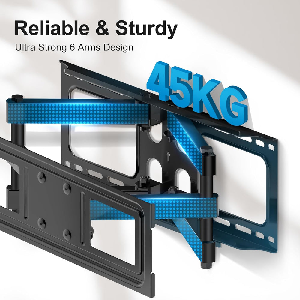 - Solide und Zuverlässig: Das ultrastarke 6-Arm-Design und die Konstruktion aus hochwertigem kaltgeformtem Stahl gewährleisten die Sicherheit und Zuverlässigkeit der robusten TV-Halterung. Jede TV-Halterung wurde auf Festigkeit getestet, um die
