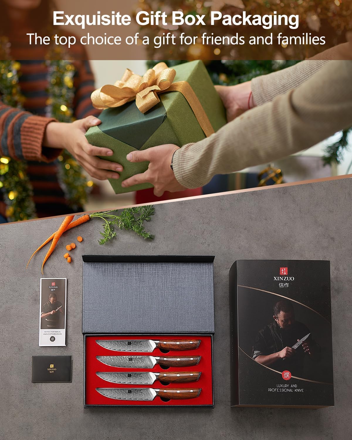- 【Marke XINZUO】100% Zufriedenheit oder Geld-zurück-Garantie, versuchen Sie risikofreies Einkaufen. Ausgestattet mit exquisiten Geschenkboxen, geeignet für festliche Geschenke und den täglichen Gebrauch. XINZUO Küchenmesser sind ideal für professionelle Köche, kulinarische Enthusiasten und Anfänger.