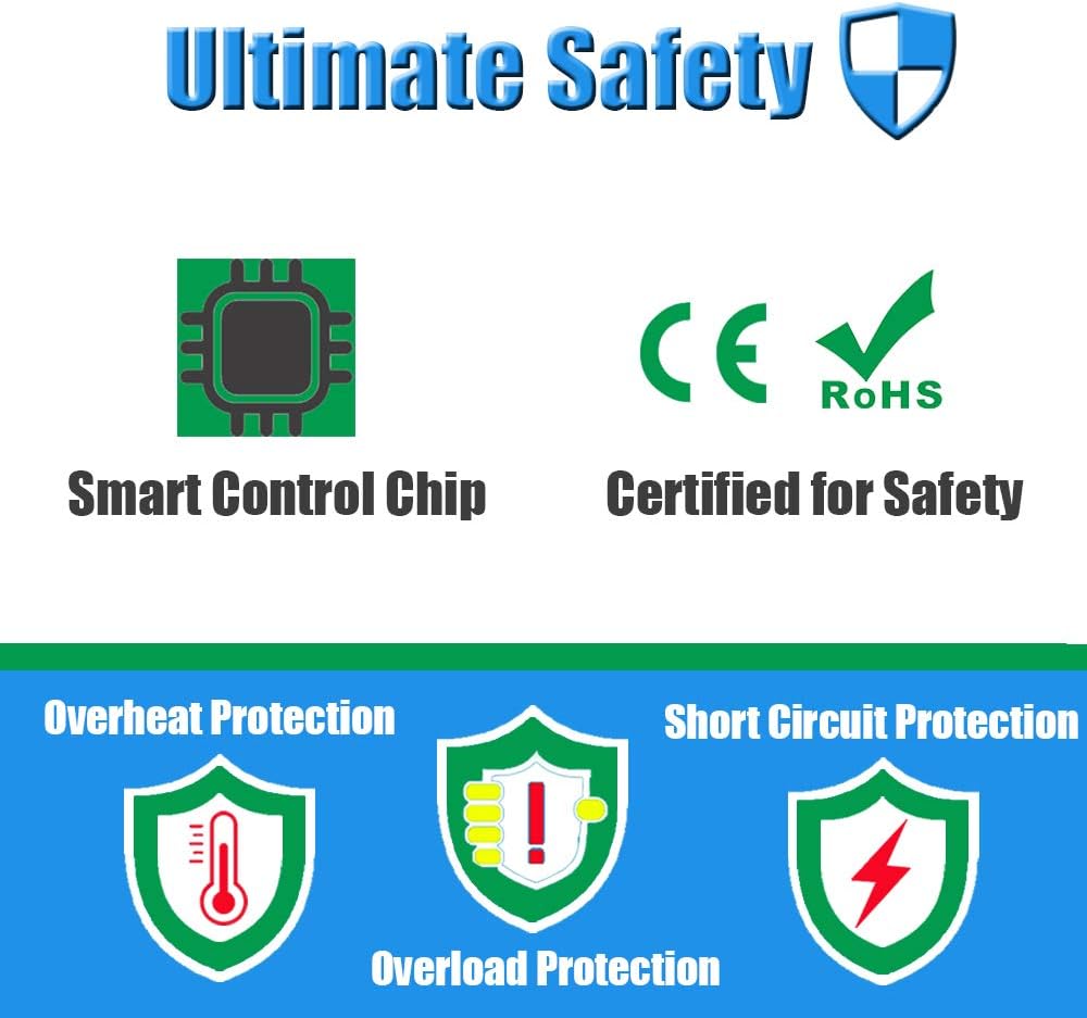 • SICHER UND STABIL: Überladeschutz, Überstromschutz, Kurzschlussschutz, Hochtemperaturschutz, um Ihre sichere Verwendung zu gewährleisten. GRADE A-ZELLEN: Kein Memory-Effekt, schnelles Aufladen und geringer Stromverbrauch. Strenge Richtlinien für die