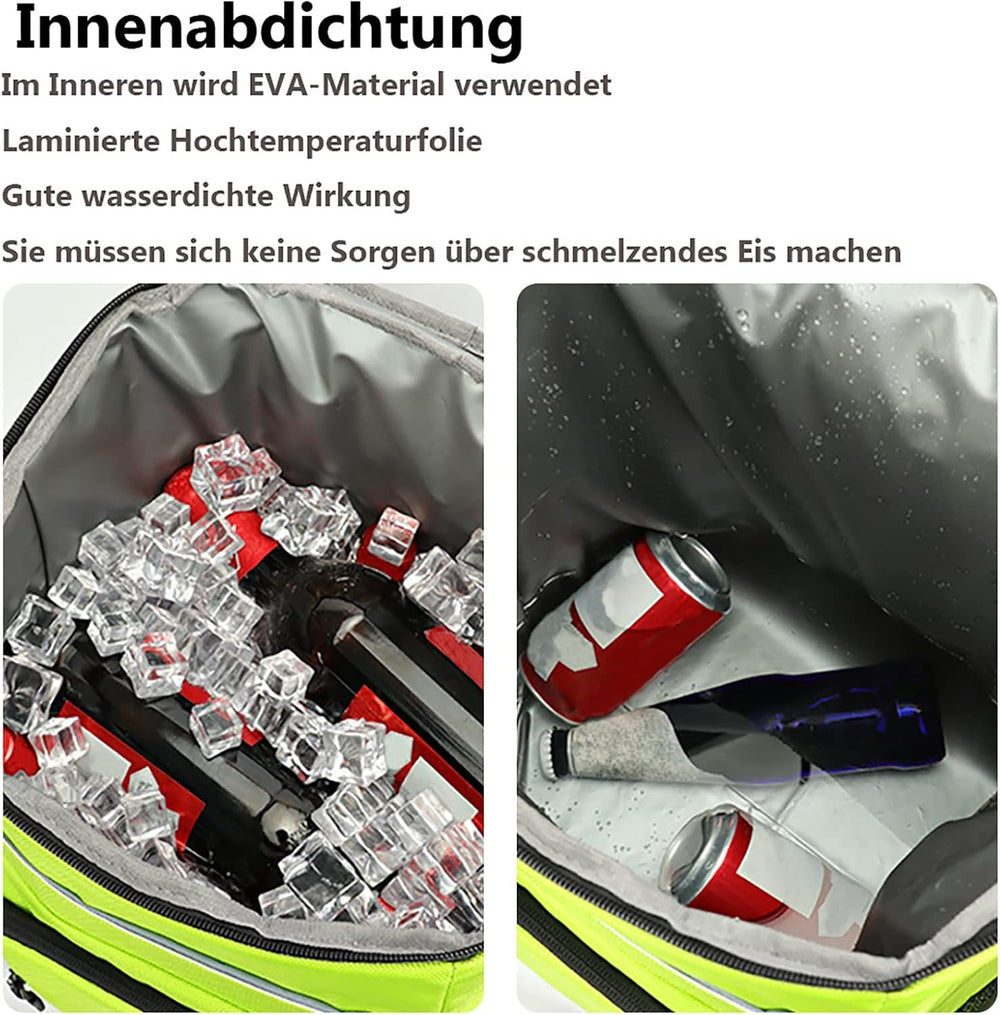 - 【Multifunktional】- nicht nur das kühlere Fach geräumig genug für 36 Dosen Getränke gibt es 2 kleinerer Reissverschlussabschnitt der Tasche und - grossartig für Brieftasche, Telefone oder Snacks. Auf beiden Seiten gibt es eine Mesh-Tasche, sodass