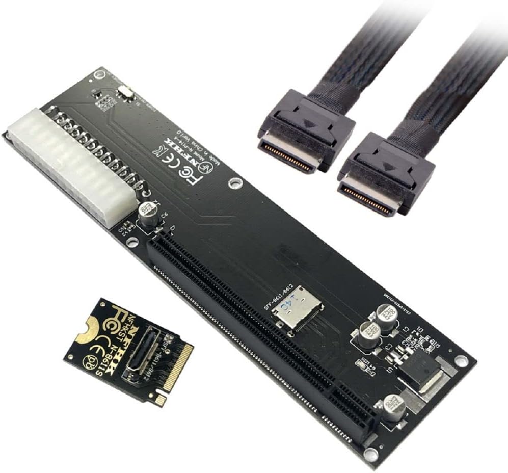 - Lieferumfang: 1 x OCuLink SFF-8612 Buchse auf Key M Stecker Adapter, 1 x Oculink SFF-8611 Kabel, 1 x OCuLink SFF-8612 Buchse auf PCI-E 16 x Adapter