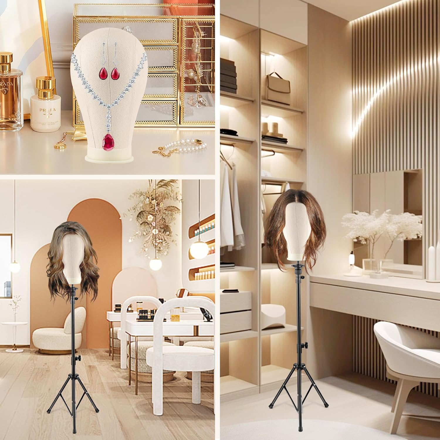- 【Stabil und langlebig】Das Perückenkopf und Perückenständer Set mit einem hochwertigen Perückenkopf und einem stabilen Mannequin-Kopfständer bietet zuverlässige Unterstützung für alle Ihre Perückenkopf-Styling-Bedürfnisse - ob beim