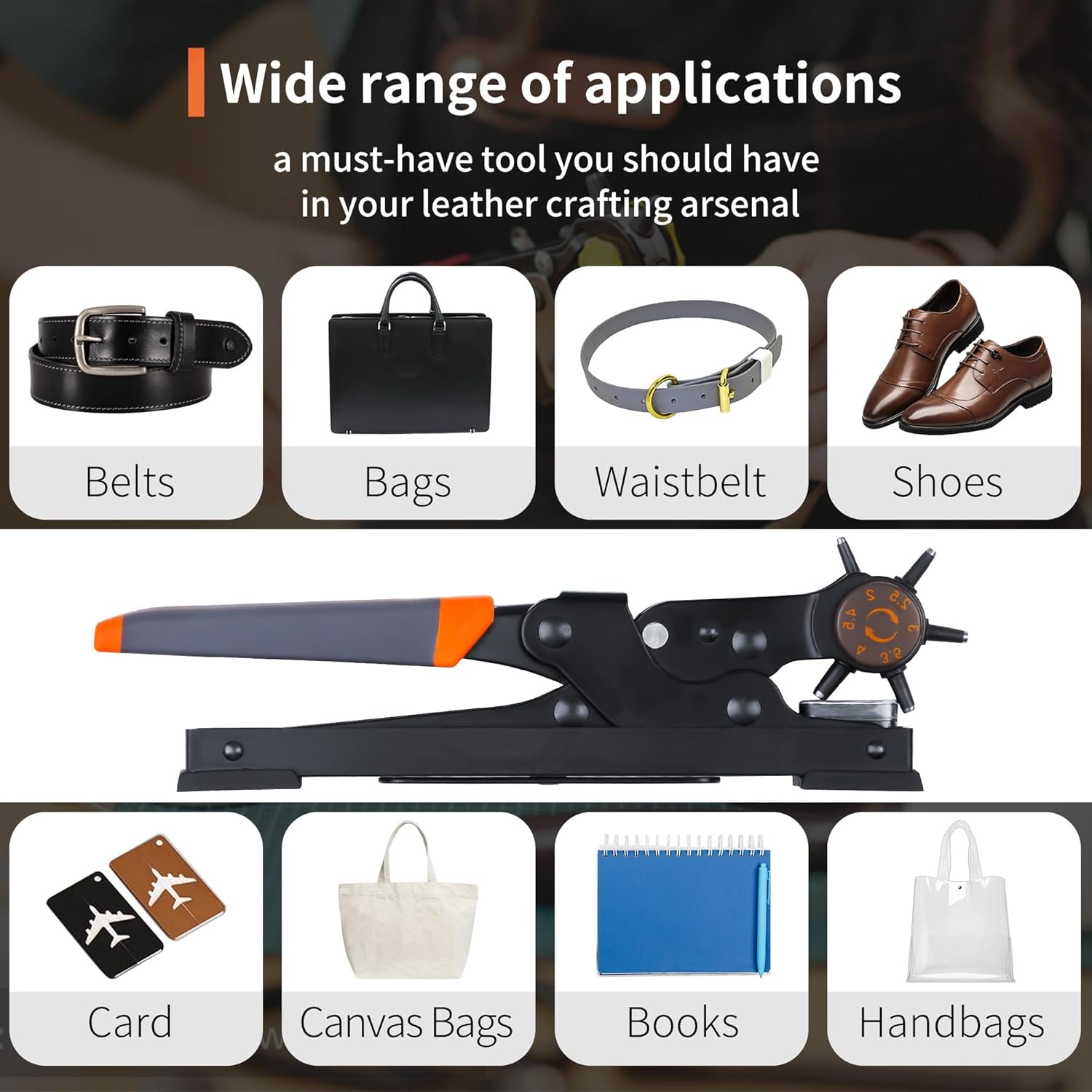 - Multifunktionell - Ideal für den Einsatz auf einer Vielzahl von Oberflächen. Es ist ein grossartiges Werkzeug. Die Lochzange wird häufig zum Stanzen von runden Löchern in Leder, Gürtel, Kunststoff, Gummi, Leinwand, Stoff, Pappe, Sätteln und