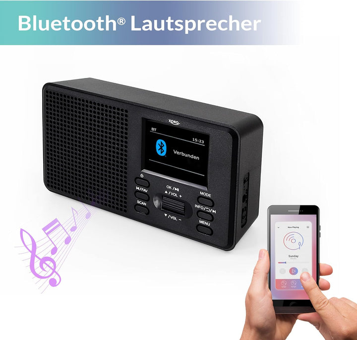 XORO DAB 142 - Tragbares Digitalradio, UKW und DAB+ Empfang, Senderspeicher, RDS-Funktion, Wecker, B