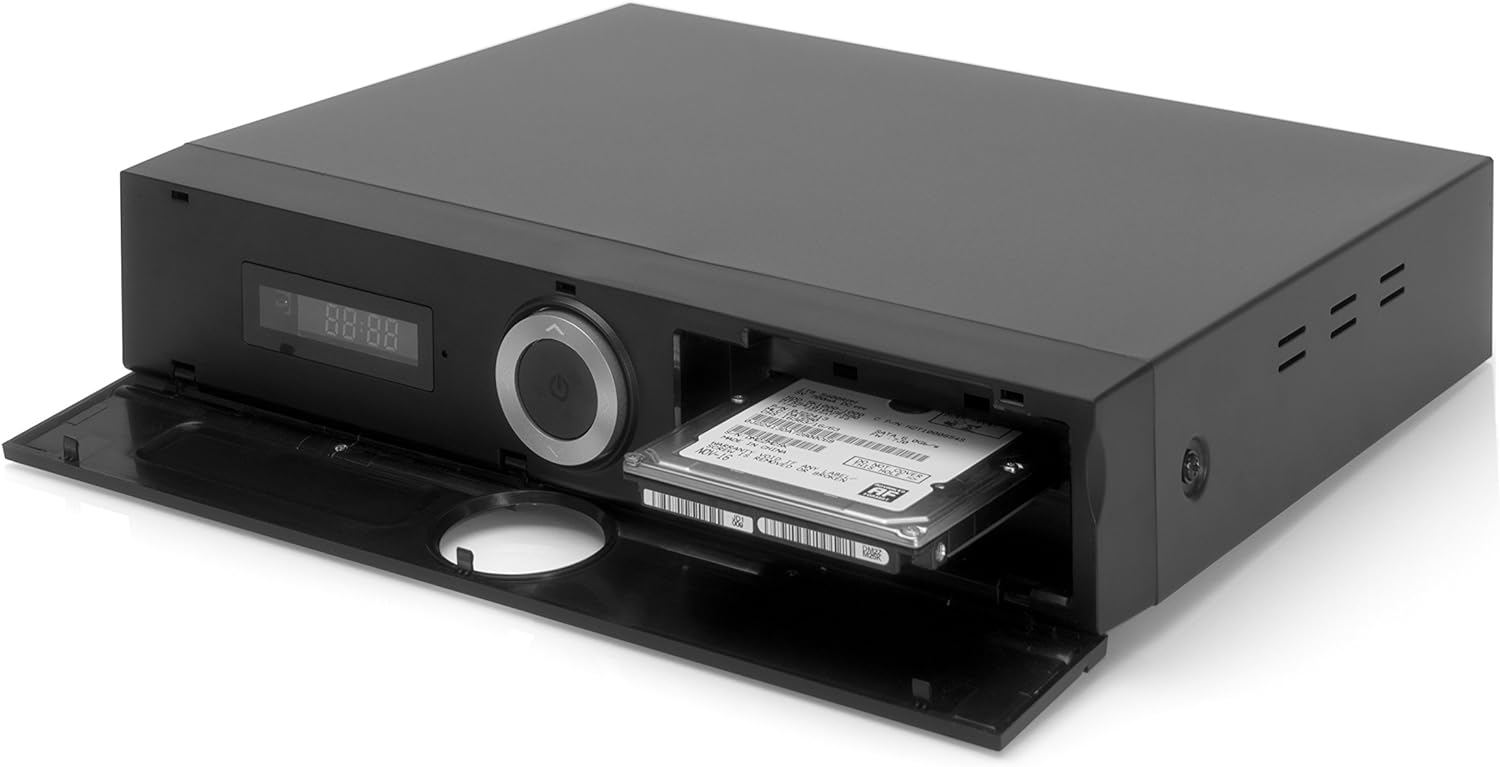 - TWIN Full HD Receiver mit 2TB (2000 GB) Festplatte, für digitales Antennenfernsehen (DVB-T/T2 HD), Empfängt SD/qHD-, HD- und Full HD-Sender (H. 265 HEVC/H. 264/MPEG2)