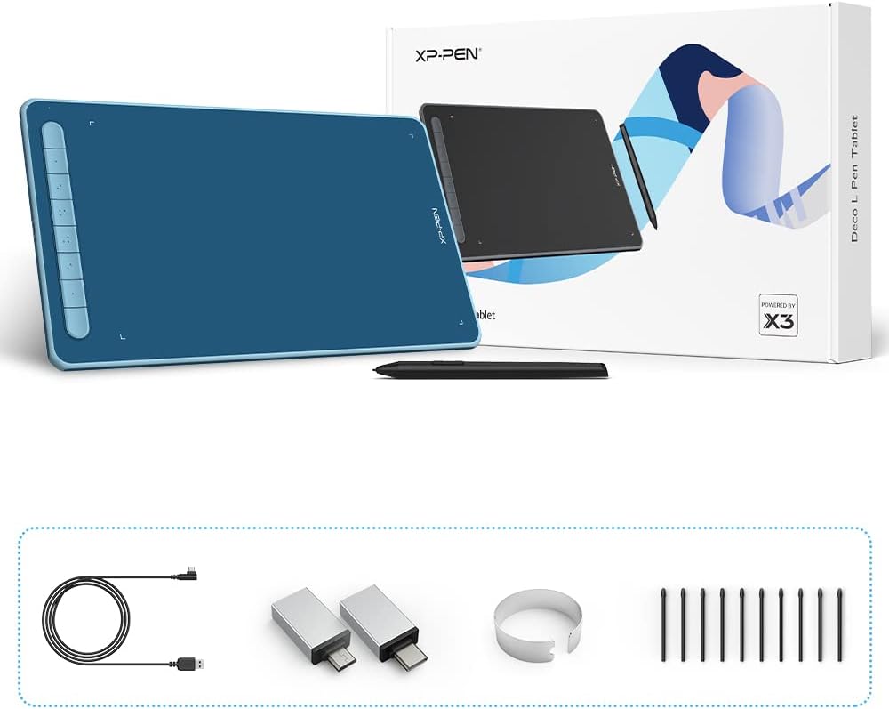 XP-PEN Deco L Grafiktablett, 25,4 x 15,2 cm, mit Eingabestift X3, für Digitalzeichnung, Animation, F