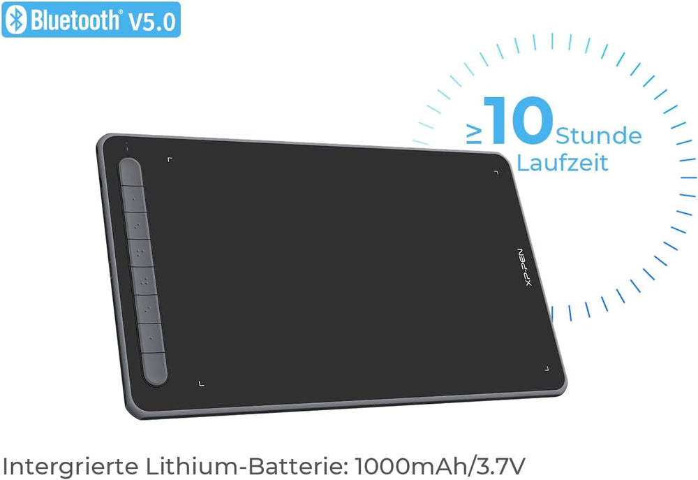 - {Bluetooth Verbindung}Das Deco LW Grafiktablett ist mit einem Bluetooth v5.0-Chip ausgestattet und es ermöglicht eine kabellose Verbindung. Die integrierte Lithium-Batterie besitzt eine grosser Kapazität (1000 mAh/3,7 V), es sorgt für mehr als 10