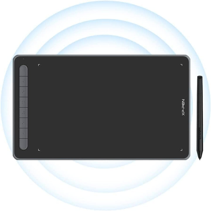 - Kabellose Verbindung - Ausgestattet mit einem Bluetooth v5.0-Chip ermöglicht Ihnen das Deco LW Stifttablett von überall aus zu kreieren. Der integrierte Akku mit 1000mAh/3,7V Kapazität sorgt für eine ununterbrochene Laufzeit von mehr als 10 Stunden.