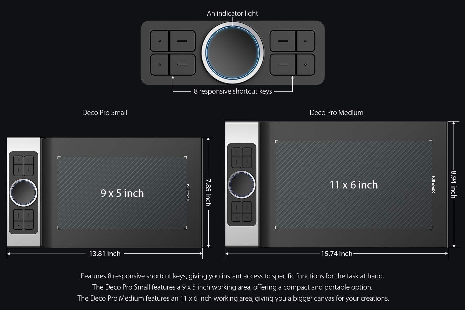 - ♣Cooles und praktisches Design: Mit der Alu-Rückseite und dem schwarzen&falchen Frontseite sieht dieses Deco Pro M Grafiktablett cool aus. Es ist der Preisträger von Red Dot Design Award 2019 und Good Design Award 2018. Aus der rechten Seite befinden