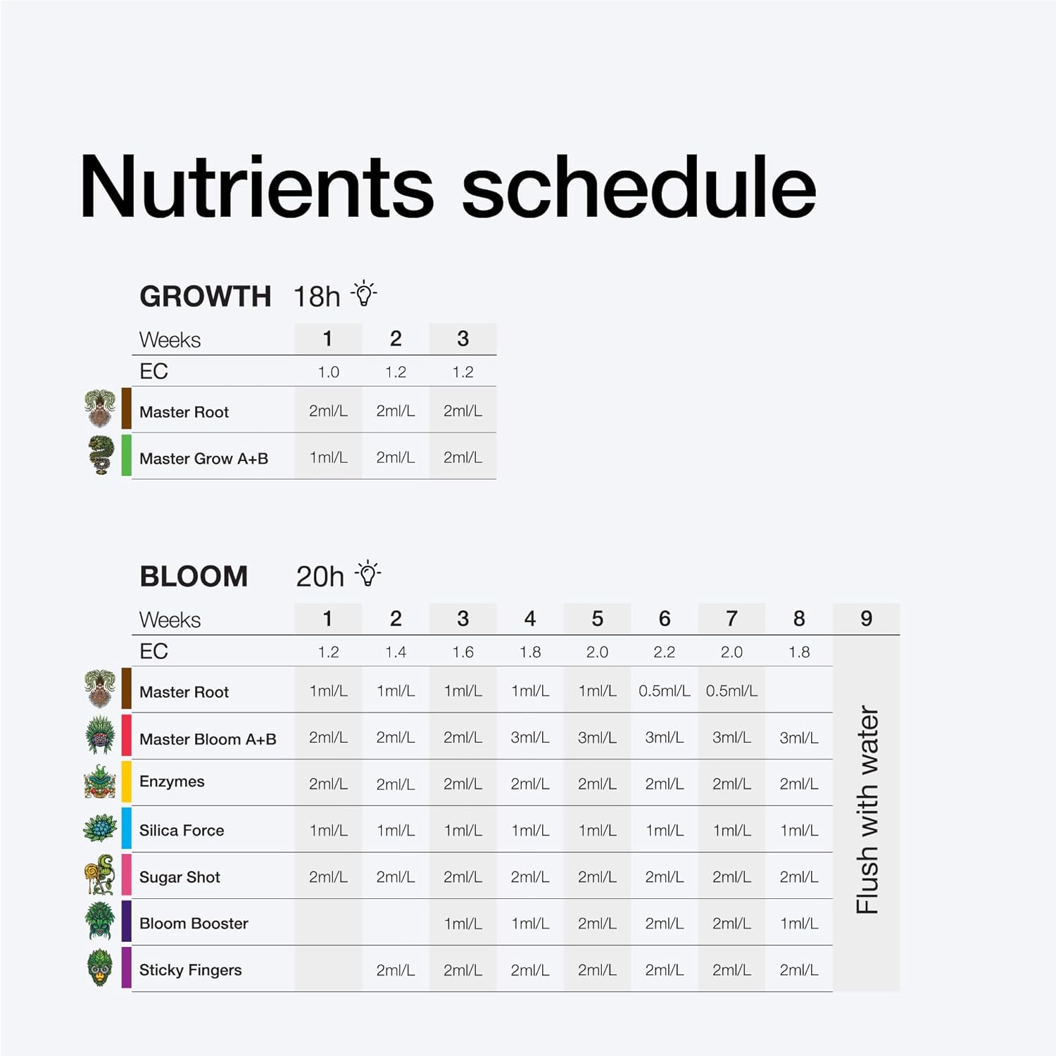 - STÄRKERE ZELLSTRUKTUR – Entwickelt, um die physische Struktur der Pflanze zu stärken und Pflanzen dabei zu helfen, den grössten Teil ihrer Energie für die Bildung von Blüten und Knospen aufzuwenden.