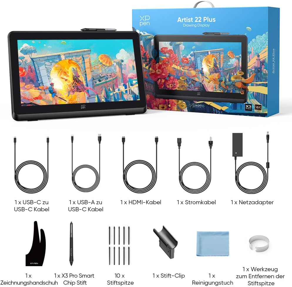 - Ein Bildschirm für den ganzen Spass: Das Artist 22 Plus Grafiktablett ist mehr als nur ein Zeichenbildschirm, es kann für weitere Kreationen, Spiele, Videos, Remote-Meetings, Online-Kurse oder Unterhaltung genutzt werden.