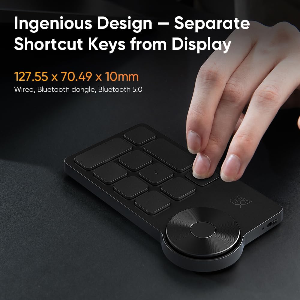 - Das Zeichentablett in Kombination mit der kabellosen Tastatur für bequeme Steuerung und effiziente Erstellung, mit integriertem Klappständer und ergonomischer X-Handgelenkstütze an der Kante macht die Erstellung bequem. Der USB-C-Kabelanschluss macht