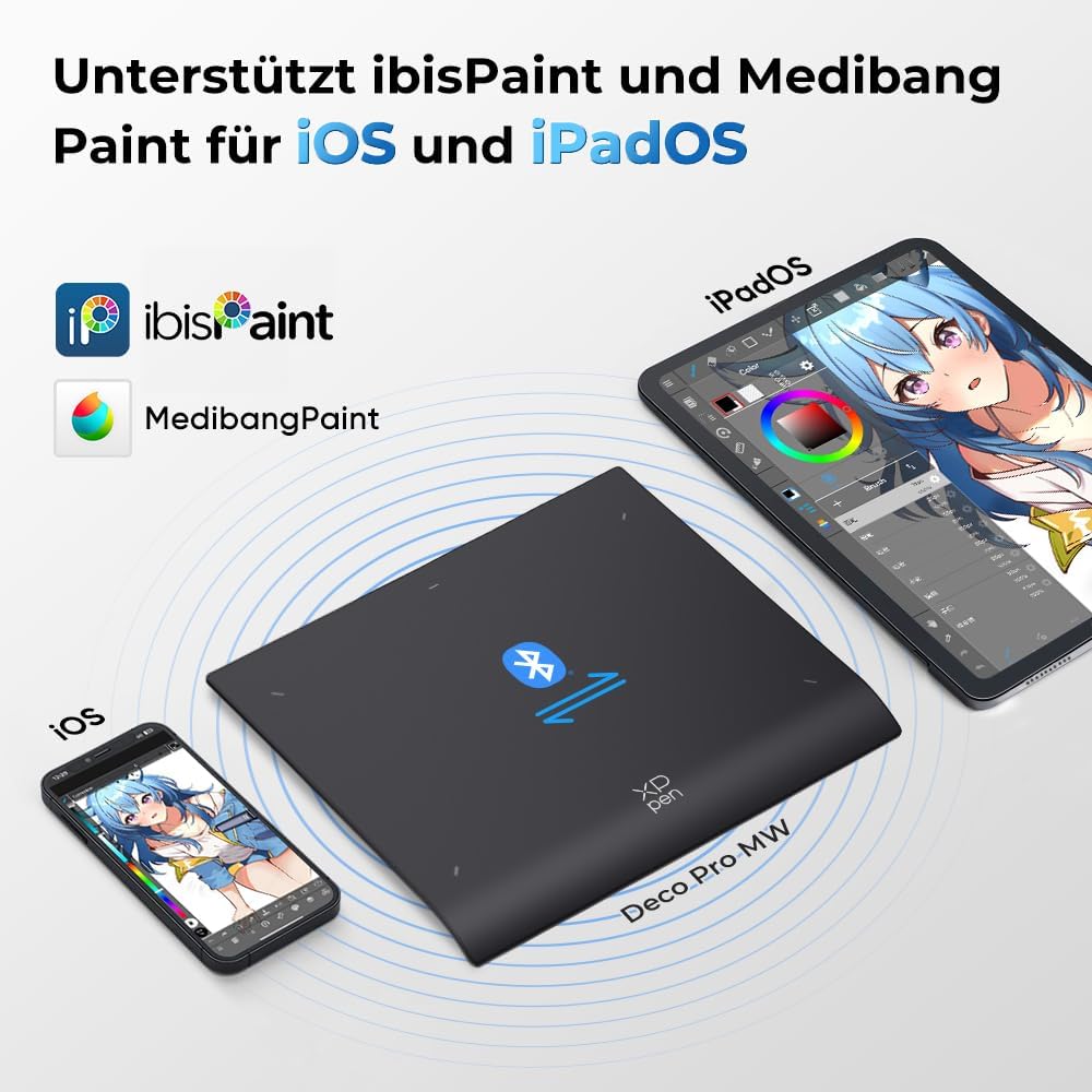 - Simulierte Papieroberfläche: Arbeiten Sie wie von Zauberhand auf der simulierten Papieroberfläche des nahtlosen Grafiktabletts, das ohne Tasten und Rillen auskommt. Zeichnen, bearbeiten und halten Sie Ihre Ideen auf gewohnte Weise fest und nutzen Sie