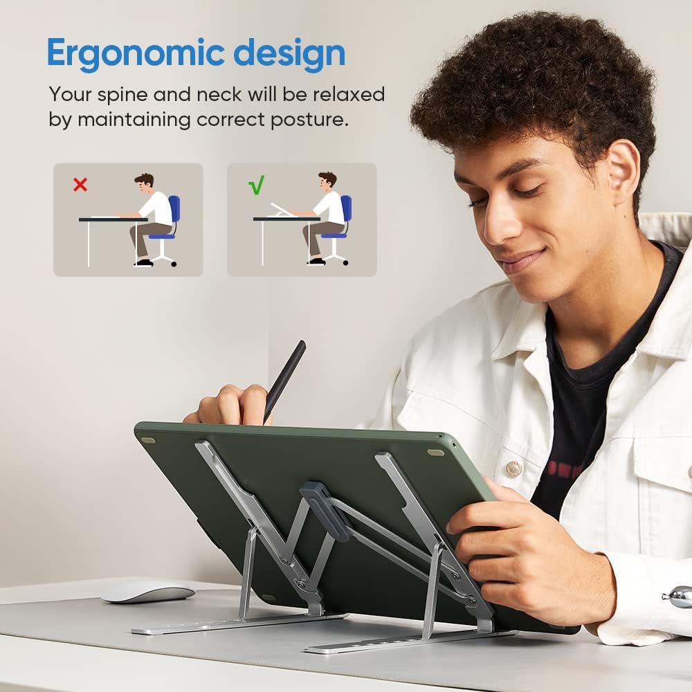 - [Ergonomisches Design] Der Ständer hat 6 einstellbare Positionen von 18 bis 45 Grad. Stellen Sie sich entsprechend auf eine bequeme Arbeitsposition ein, Ihre Wirbelsäule und Ihr Nacken werden entspannt, indem Sie eine korrekte Haltung beibehalten.