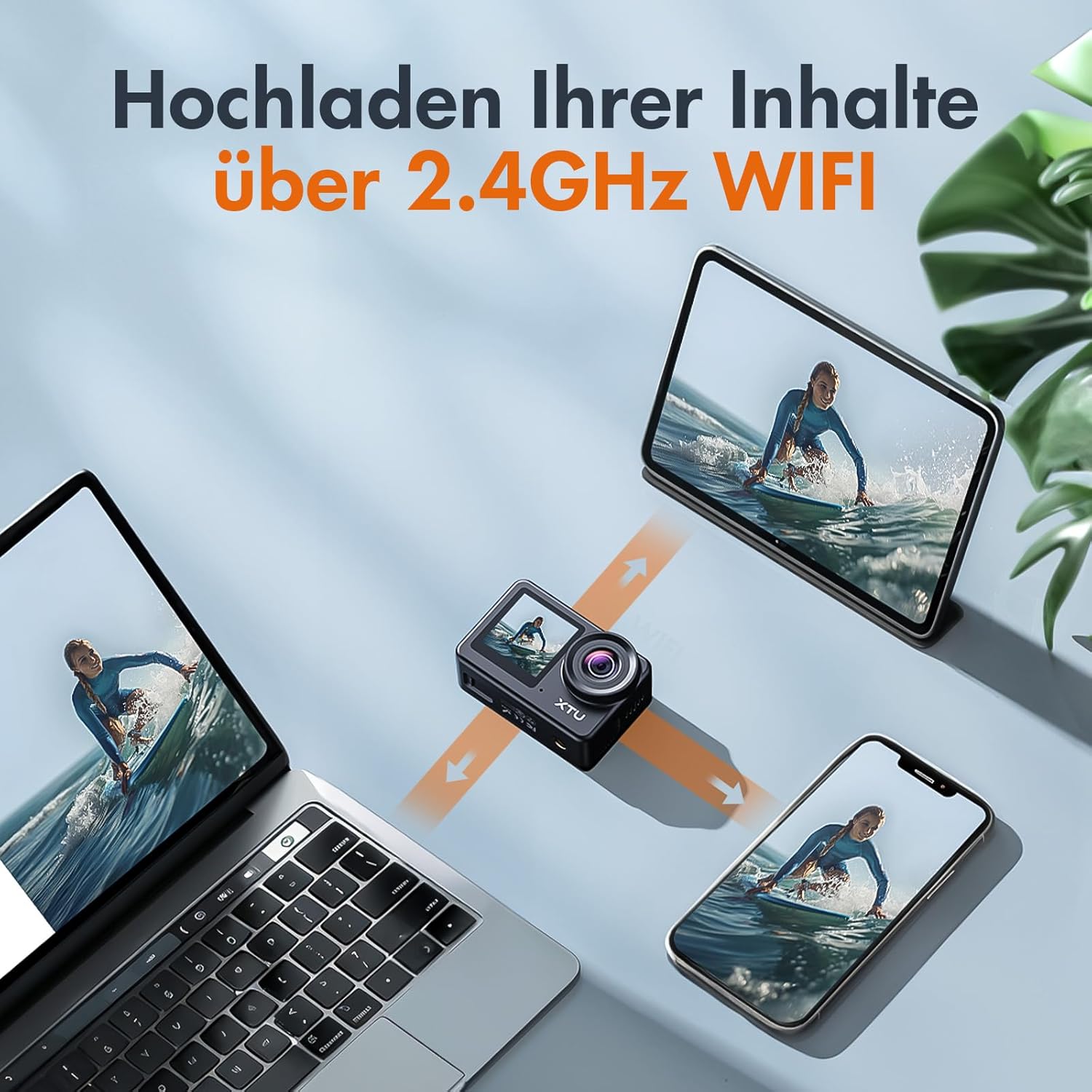 - đăUnterwasser & WiFi-Konnektivitätă: Actioncam ist mit einem wasserdichten Gehäuse ausgestattet, die unter Wasser in einer Tiefe von 40 Metern gedreht werden kann, herausfordernde neue HĂśhen der Unterwasser-Filmen. 2.4G WIFI drahtlose