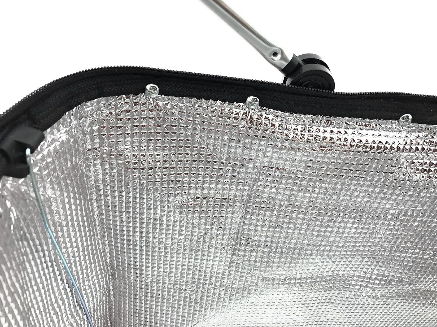 - Die Softgrip Henkel sind klappbar und der komplett zu öffnende Deckel mit Reissverschluss ermöglicht ein schnelles Beladen auch mit sperrigen Teilen.