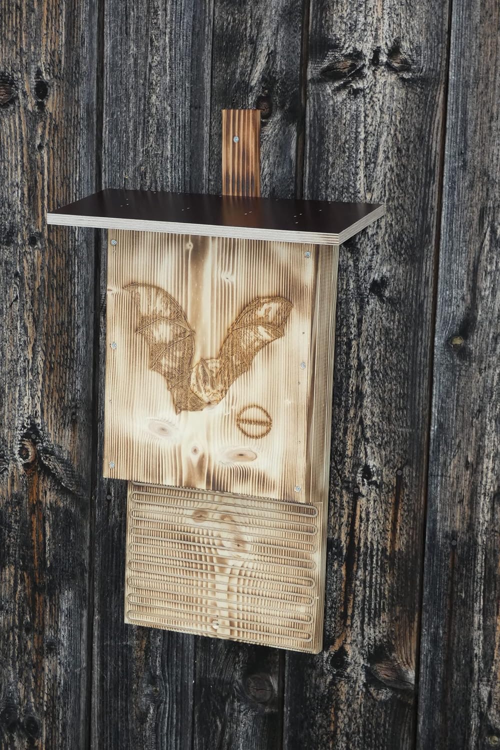 - 🦇 ARTGERECHT: Auf Empfehlung von Artenschützern, Ornithologen und Biologen nach NABU Vorgaben gebauter massiver Fledermauskasten