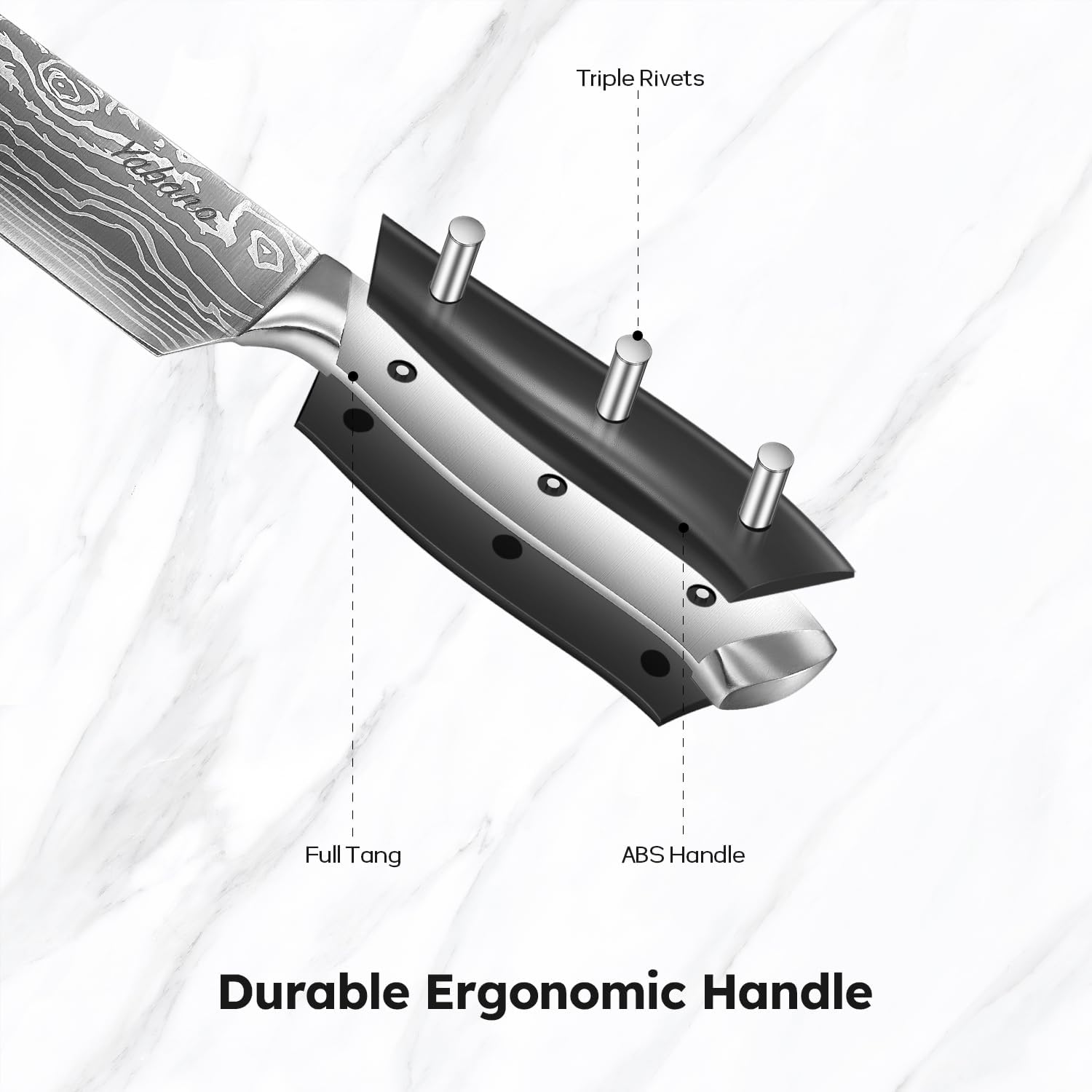 • Einfache Pflege & Reinigung – Das Küchenmesserset ist leicht zu reinigen. Um Schärfe und Glanz der Klingen zu bewahren, empfehlen wir Handwäsche. Messer nach dem Spülen sofort abtrocknen, um ihre Langlebigkeit und Leistung zu maximieren.