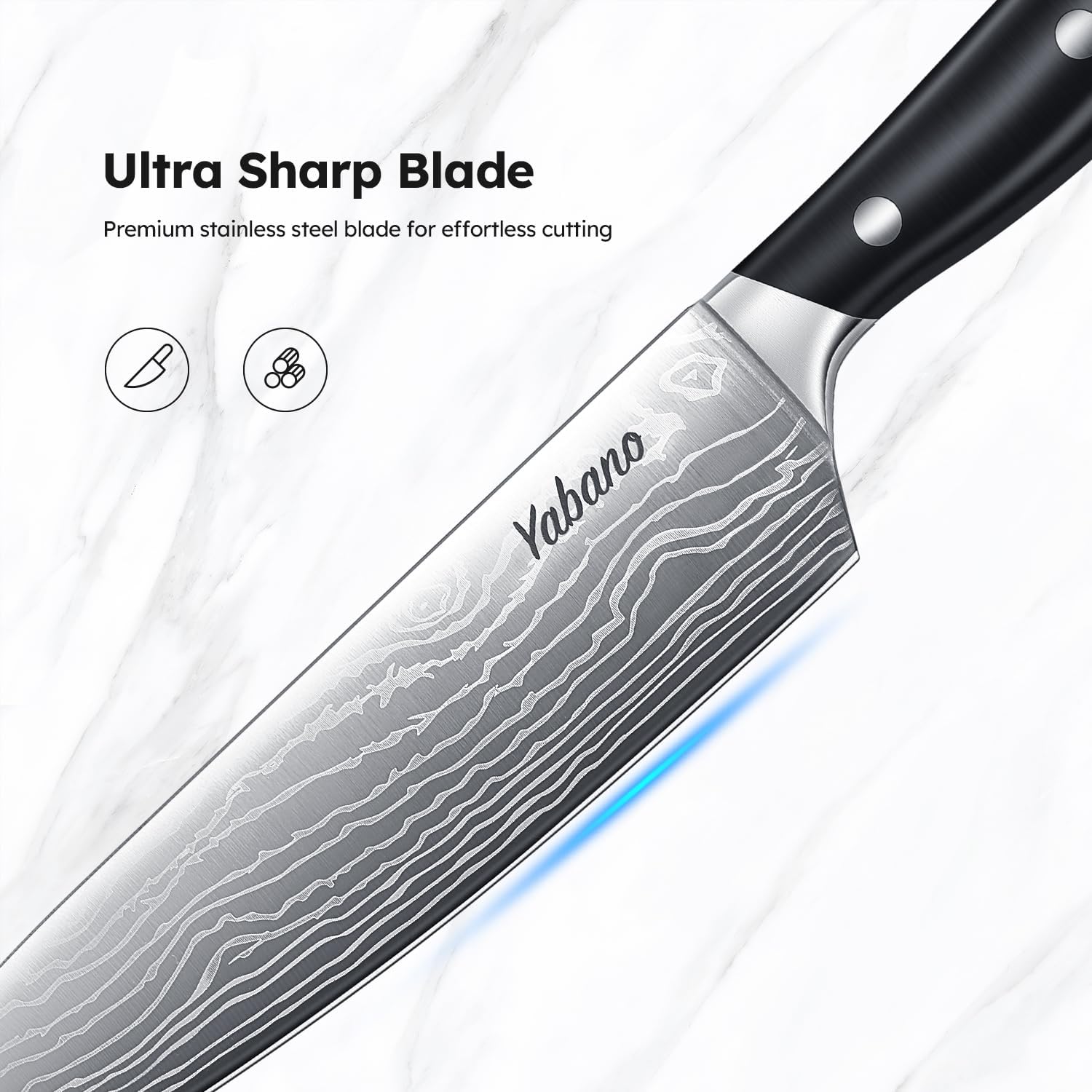 Yabano Messerblock Set, 14-teilig Küchenmesserset Edelstahl, Messer Set mit Holzblock und integriert