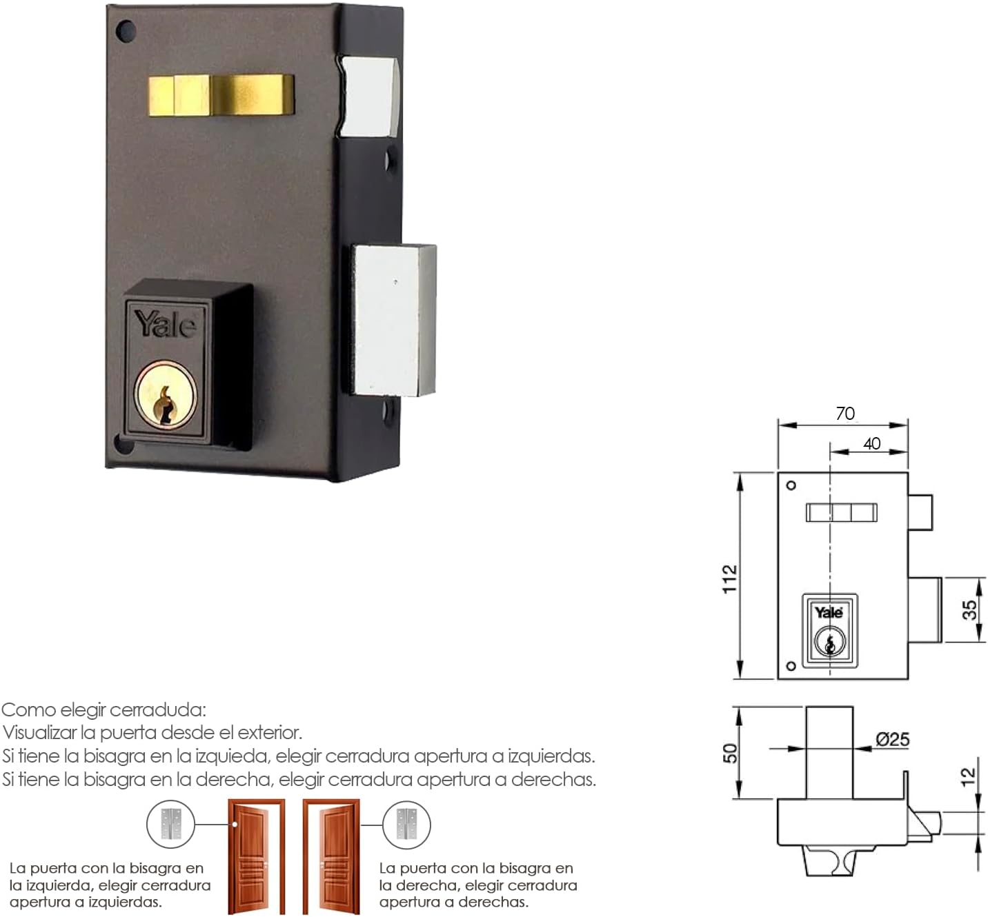 Yale 56-a/HP/70 Türschloss, Sinne, Öffnung rechts 56-A Rechts Entrada 40 mm Braun, 56-A Rechts Entra