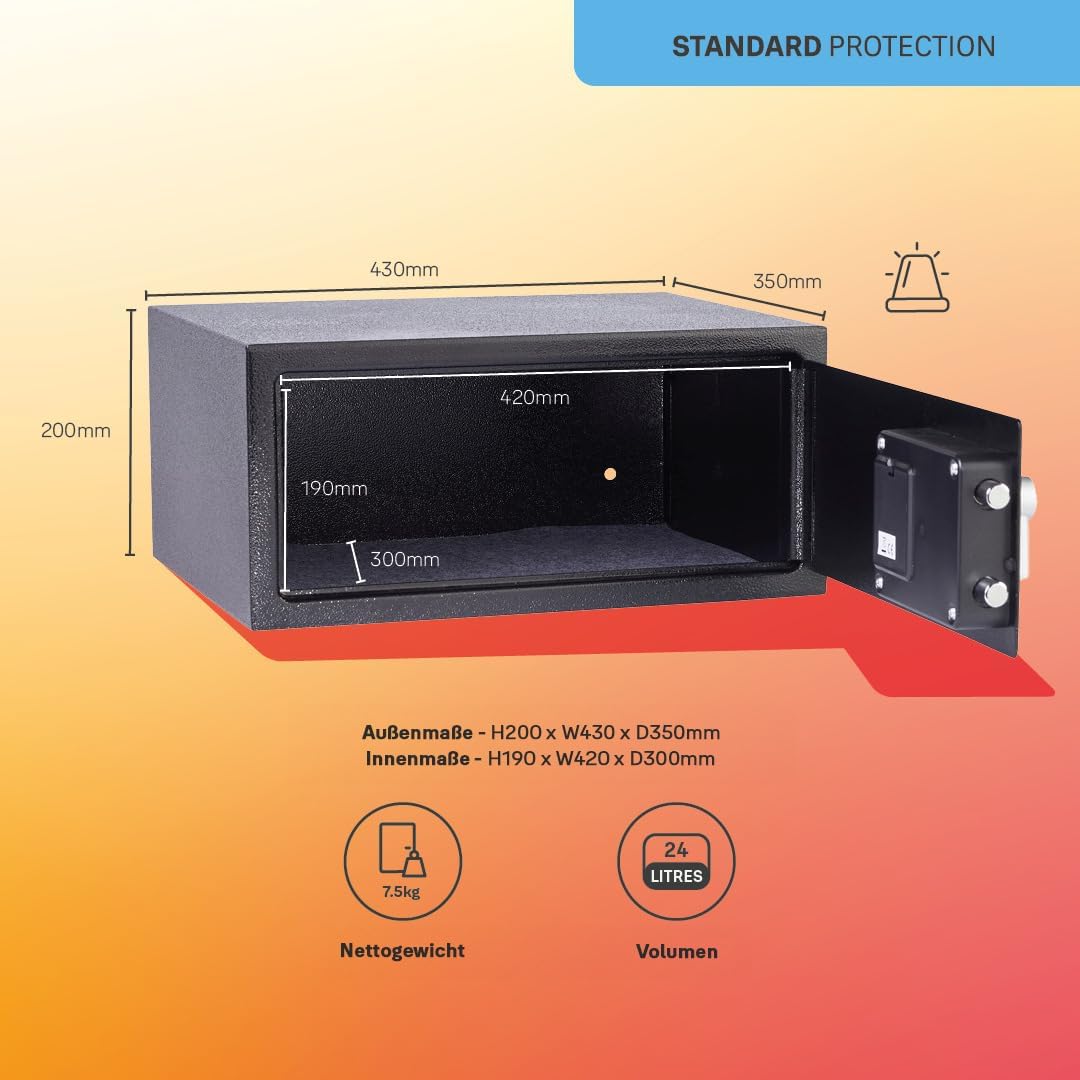 - SICHERE AUFBEWAHRUNG: Deine Gäste können ihre Wertsachen sicher aufbewahren und ihren Aufenthalt in dem Wissen geniessen, dass diese durchgehend gut geschützt sind. Mit dem Teppichboden im Inneren des Tresors bleiben empfindliche Gegenstände in