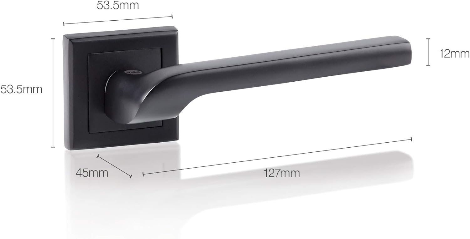 - GRÖSSE UND OBERFLÄCHE: Die Grösse des Griffs beträgt 127 x 12 x 45 mm und die Grösse der Rosette: 53,5 x 53,5 mm. Die Oberfläche des Griffs ist mattschwarz und verleiht ihm ein elegantes Aussehen, das zu jeder Inneneinrichtung passt.