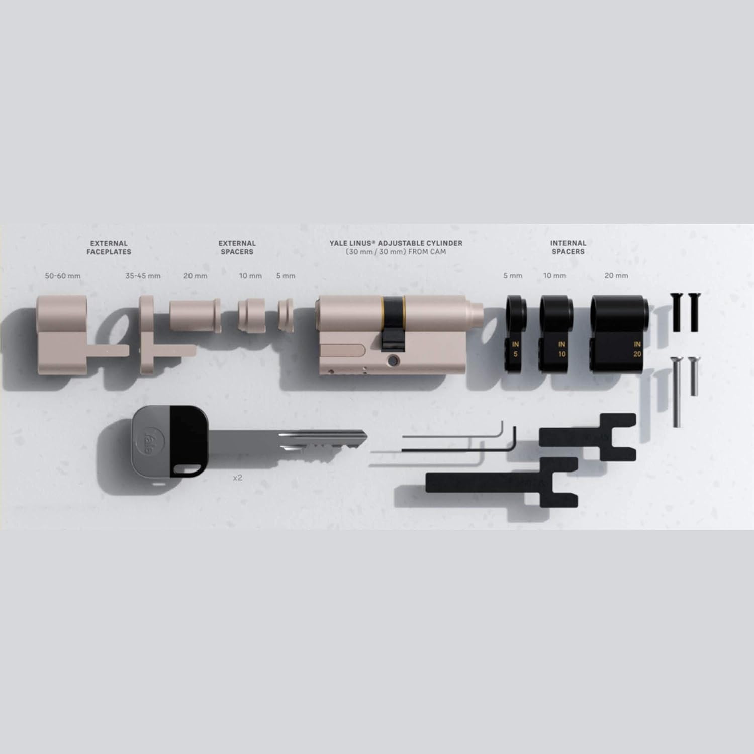 - Produkt 2: YALE LINUS VERSTELLBARER ZYLINDER - Der verstellbare Yale Linus Zylinder funktioniert garantiert mit dem Linus Smart Lock. Je nachdem, welcher Zylinder sich derzeit in deiner Tür befindet, musst du ihn möglicherweise tauschen, um mit dem