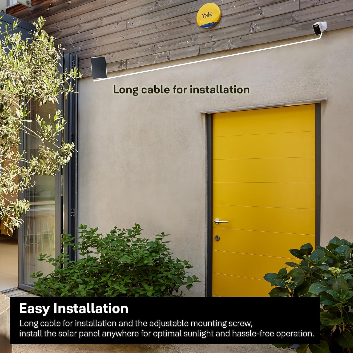 - FLEXIBLE INSTALLATION: Installiere dein Yale Solarladegerät ganz einfach mit der mitgelieferten Schraubbefestigung und dem 2m langen Kabel und positioniere es so, dass es optimal der Sonne ausgesetzt ist.
