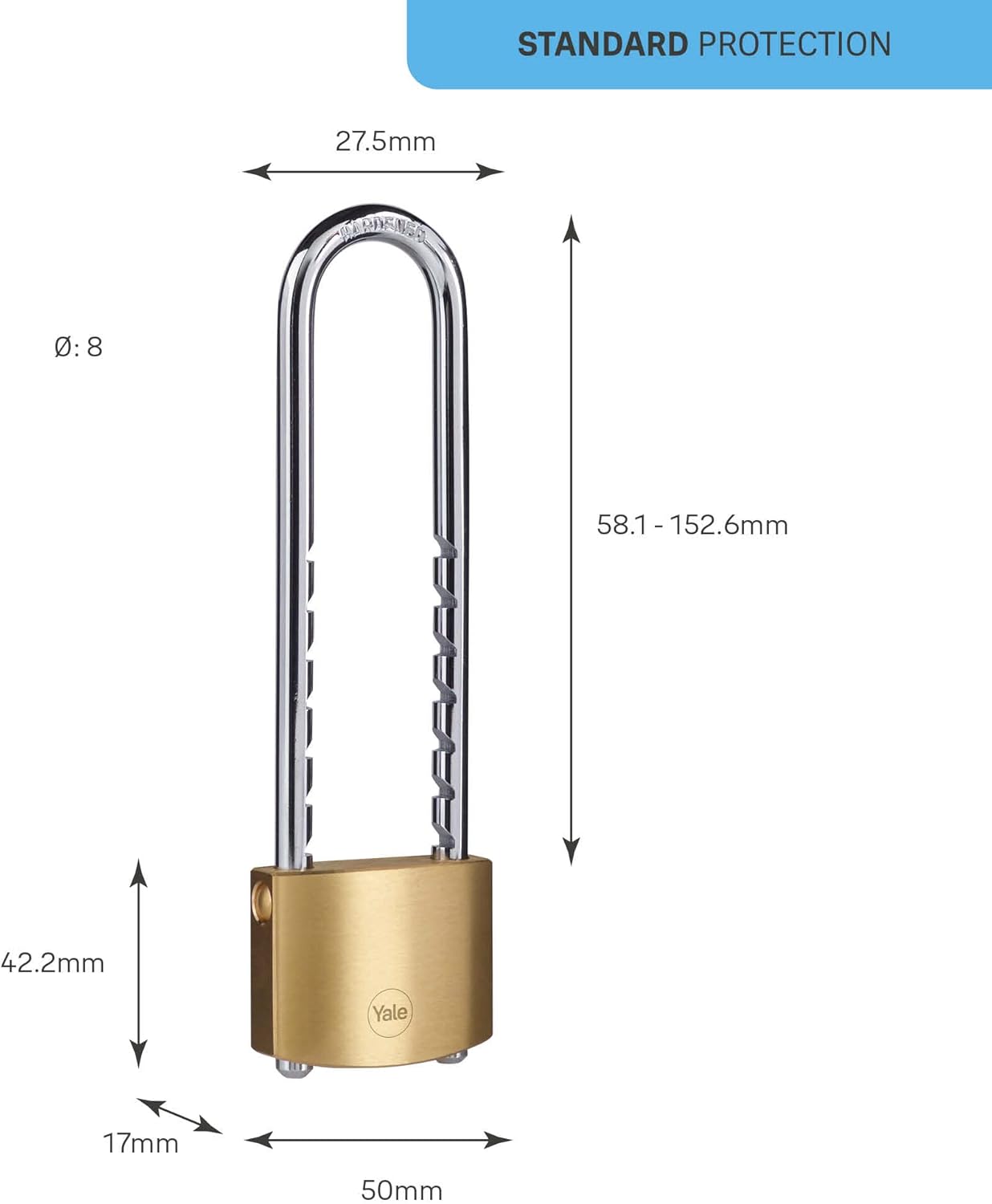 Yale - Y110B/50/155/1 Standardsicherheit 50 mm Messing Vorhängeschloss, Einstellbarer & abnehmbarer,