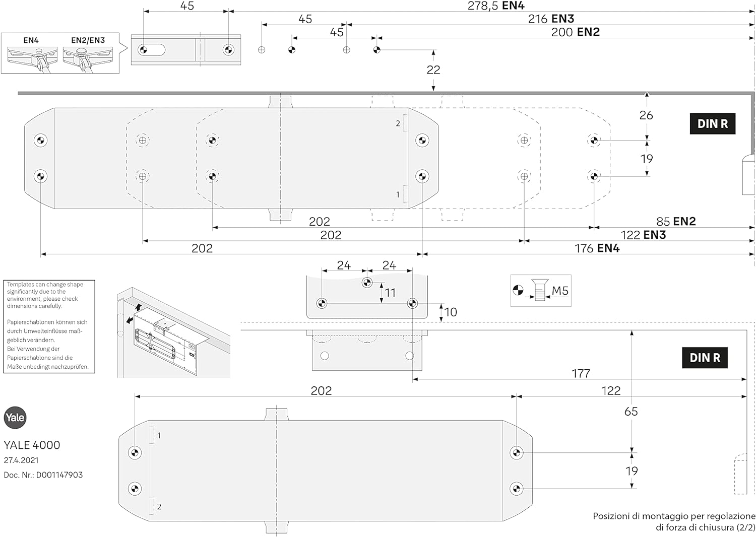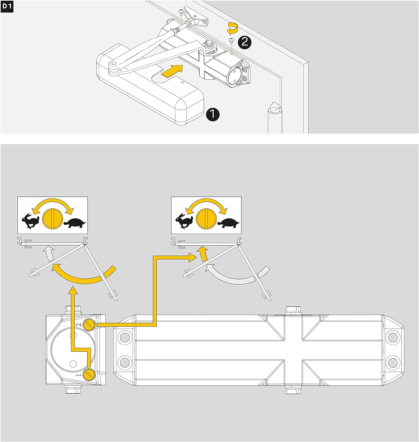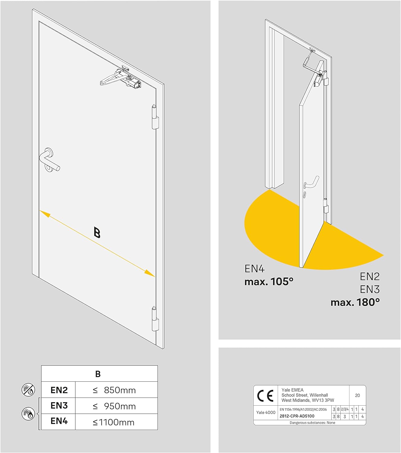 - Türschliesser für Türen von 40, 60 oder 80 kg; verstellbare Stärke 2,3,4; Zertifikat CE EN 1154 Für Feuerschutzabschluss