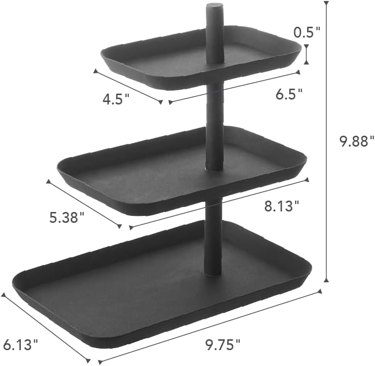 - 3-stöckiger Zubehörständer: Verwenden Sie dieses Zubehörtablett in Ihrem Zuhause, um Schmuckstücke wie Armbänder, Halsketten, Ringe, Uhren, Ringe, Brillen und andere kleine Accessoires aufzubewahren. Für Ordnung im Schlafzimmer oder Badezimmer.