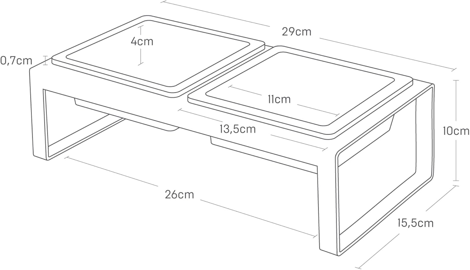 - Grösse und Gewicht: L 29 x H 10 x B 15,5 cm, 1,4 kg