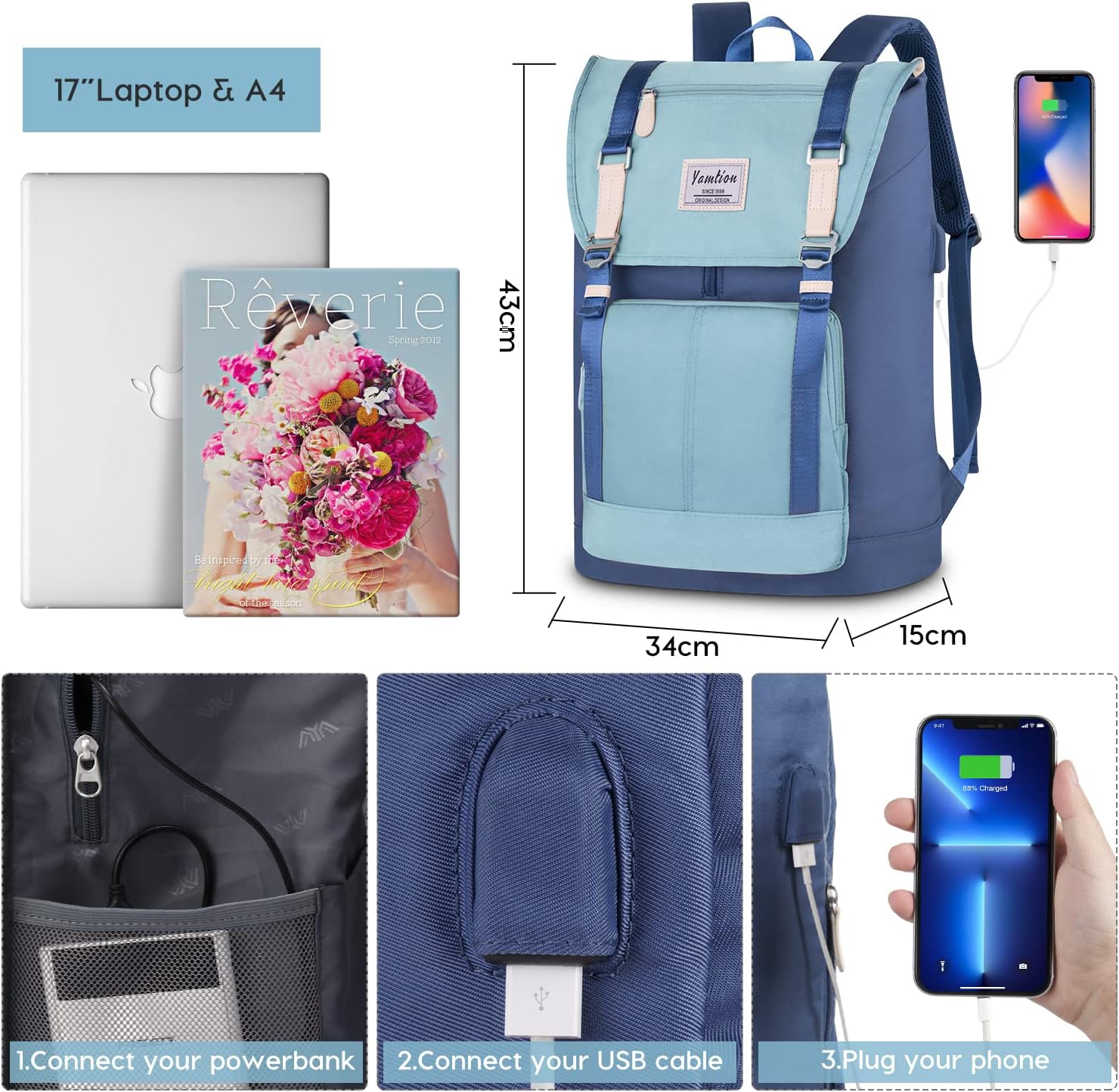 - đă USB-Ladeanschluss & Laptop Compartment ăAls laptop rucksack schick, dem integriertem USB-Anschluss können Sie Ihre eigene Power Bank im Inneren anschliessen und Ihr Smartphone einfach aufladen. Die laptopfach ist speziell fĂŒr Ihr 17 zoll,
