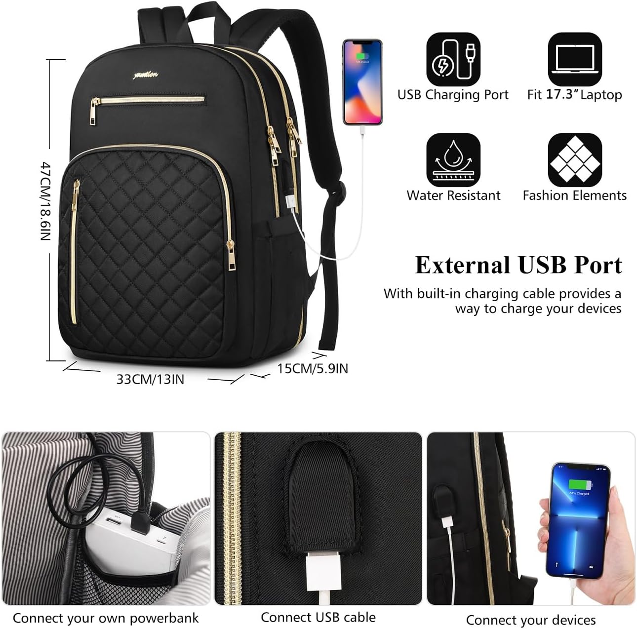 YAMTION Damen Rucksack,Schultasche Frauen Schulrucksack Mädchen Teenager 17.3 Zoll Laptop Rucksack f