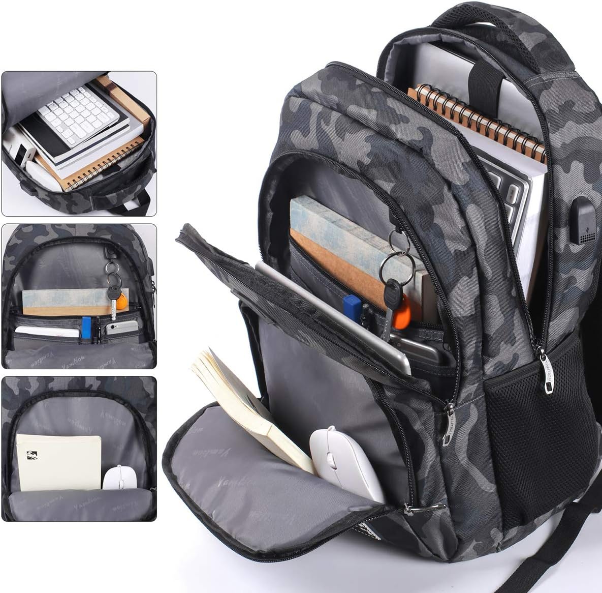 - USB-Anschluss-Design:Mit integriertem USB-Ladegerät aussen und integriertem Ladekabel im Inneren bietet dieser USB-Rucksack eine bequemere Möglichkeit,Ihr Telefon während des Gehens aufzuladen. Bitte beachten Sie,dass dieser Rucksack sich nicht selbst antreibt,USB-Ladeanschluss bietet nur einen einfachen Zugang zu berechnen.