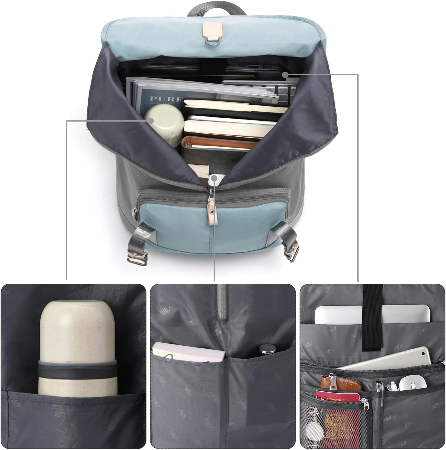 • 🎒【 Besondere Design mit Schnallen 】Im Gegensatz zu anderen Rucksack damen mit grosser Kapazität, ist diese cityrucksack mit einem V-förmigen Hauptfach ausgestattet. Sie müssen nur den Reissverschluss ziehen, Sie könnten alles finden, obwohl es