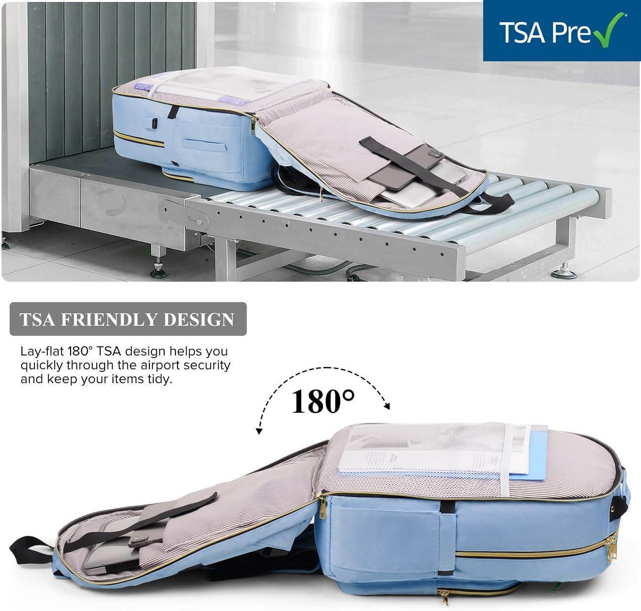 • 【TSA-Design】TSA-Freundliche rucksack können problemlos von einem Sicherheitsmaschine gescannt werden.Entfaltet den Schulrucksack am Checkpoint frei um 90-180 Grad und der Laptop bleibt flach,ohne ihn aus dem Rucksack zu nehmen,wodurch er effizienter
