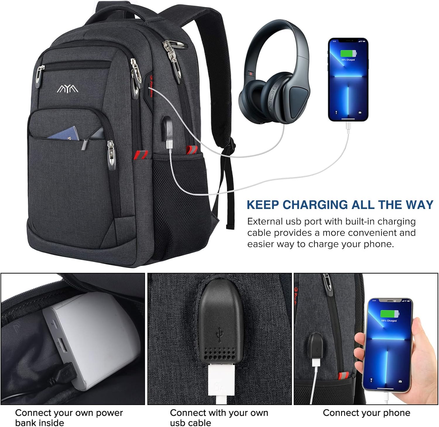 - USB-PORT & HEADPHONES HOLE - Mit integriertem USB-PORT aussen und integriertem Ladekabel im Inneren bietet dieser Rucksack eine bequemere Möglichkeit,Ihr Telefon während des Gehens aufzuladen. (tragbares Netzteil erforderlich und NICHT im rucksack
