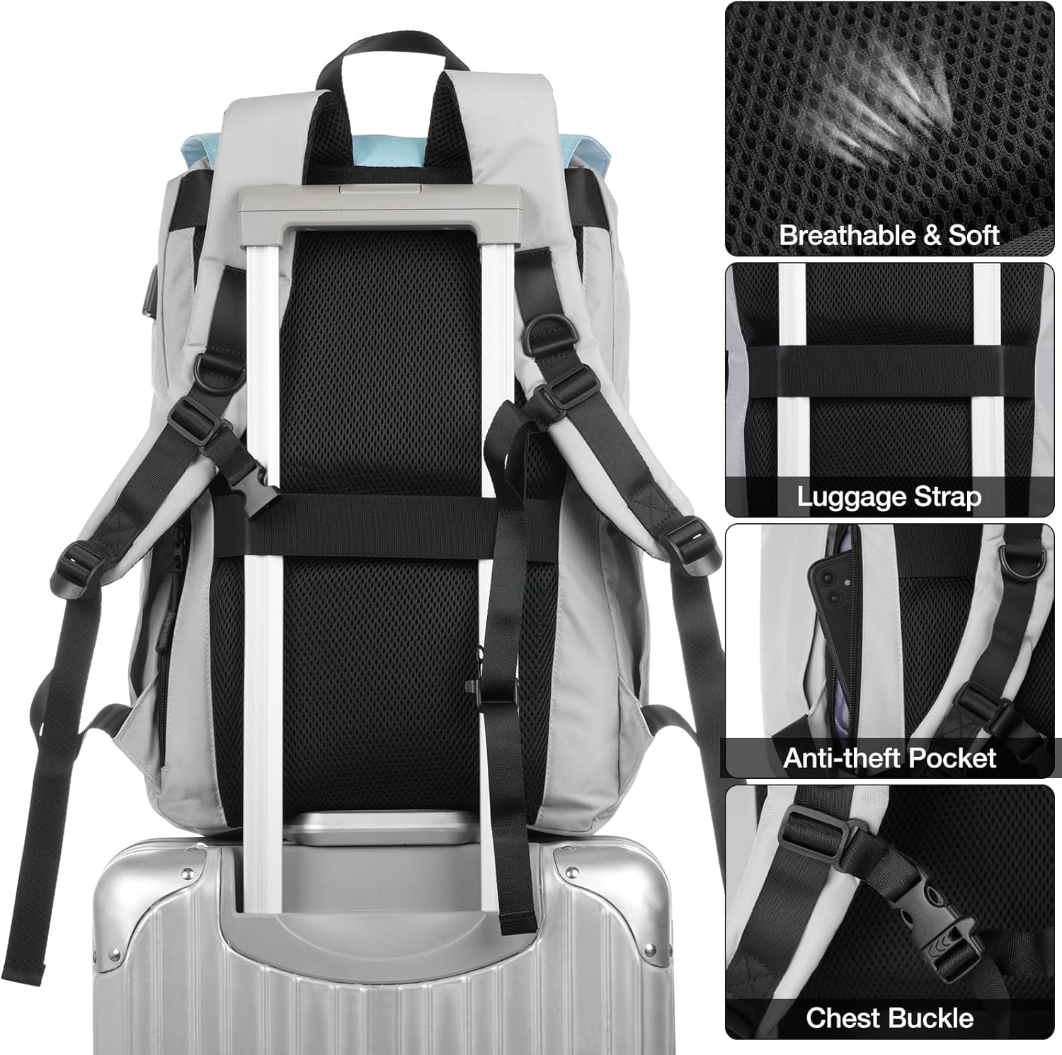- 【KOMFORTABLES SCHULTERGURT】Rückseite des Rucksacks mit extra dickem und ultra-atmungsaktivem Design,bietet leichte Trage und Kraftverstärkung. Die verschiebbaren Brustgurte helfen Ihnen, das Gewicht des Laptop Rucksacks auszugleichen und die