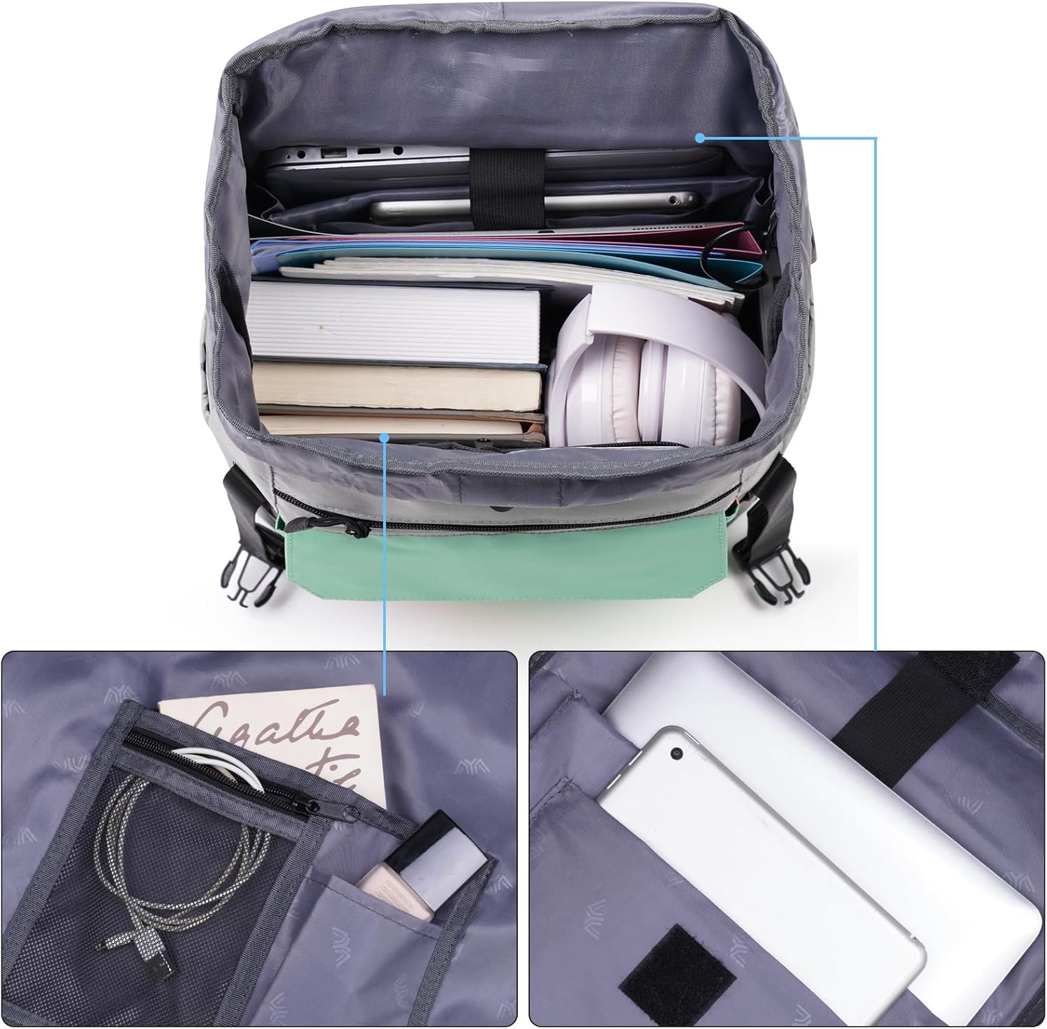 • 【ANTI DIEBSTAHL TASCHE & GEPÄCKRIEMEN】Die Rückseite der Arbeitstasche ist mit einer unabhängigen Diebstahlsicherungstasche ausgestattet, die Ihre Wertsachen schützen kann. Und der Gepäckriemen ist sehr praktisch, sodass Sie den rucksack am Wagen