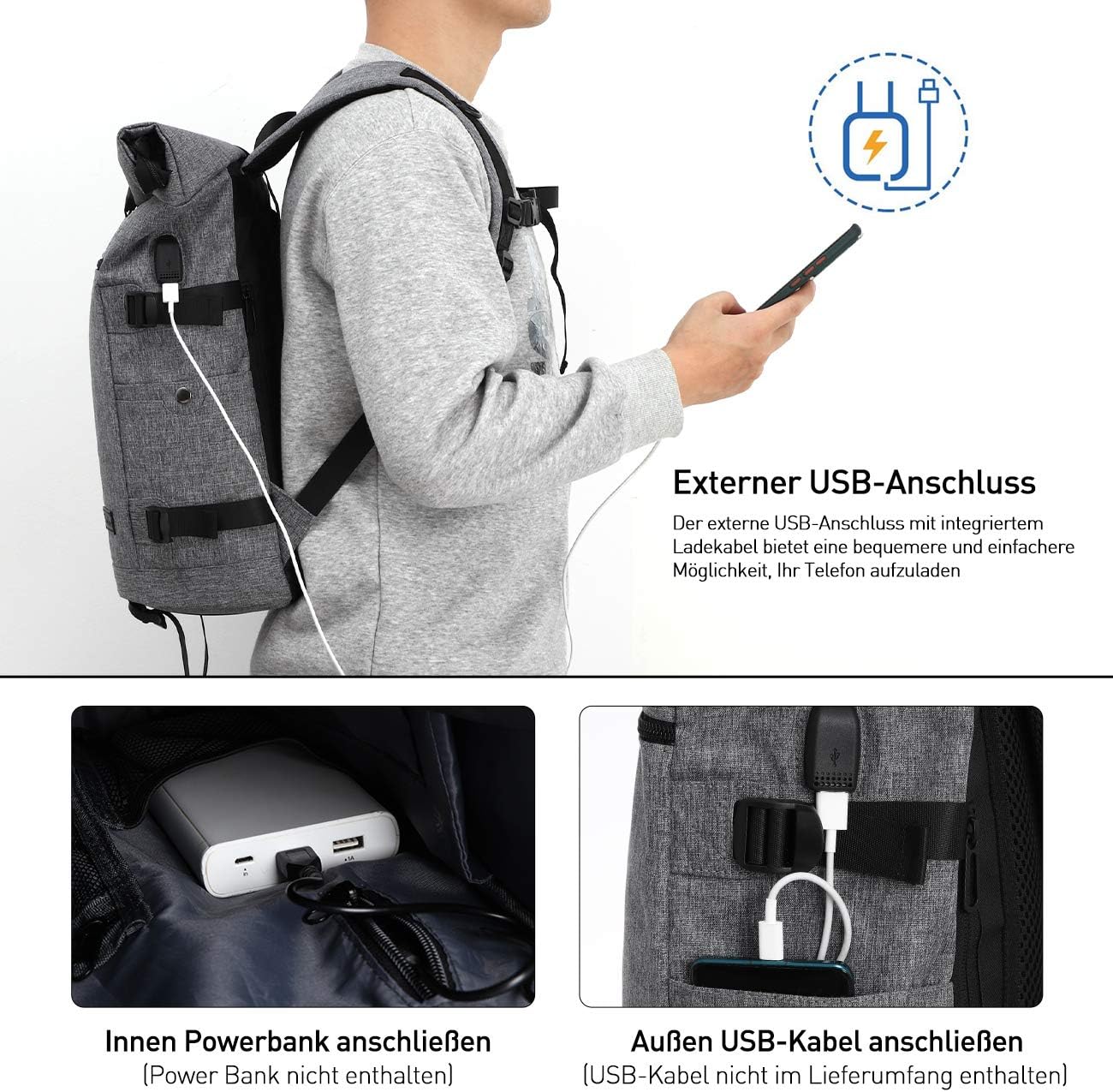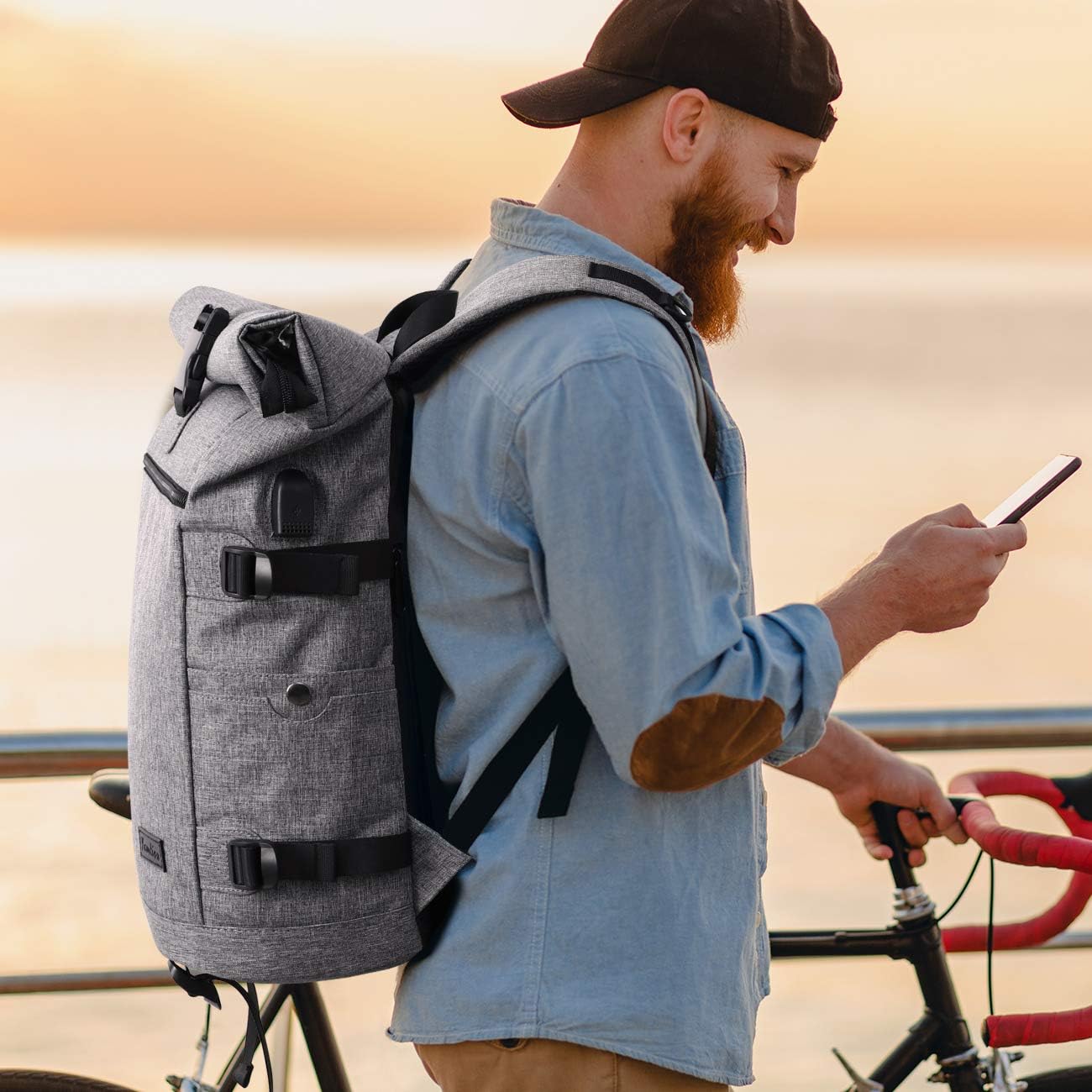 YAMTION Laptop Rucksack Herren,Rolltop Rucksack Schulrucksack Jungen Teenager mit USB Ladeanschluss