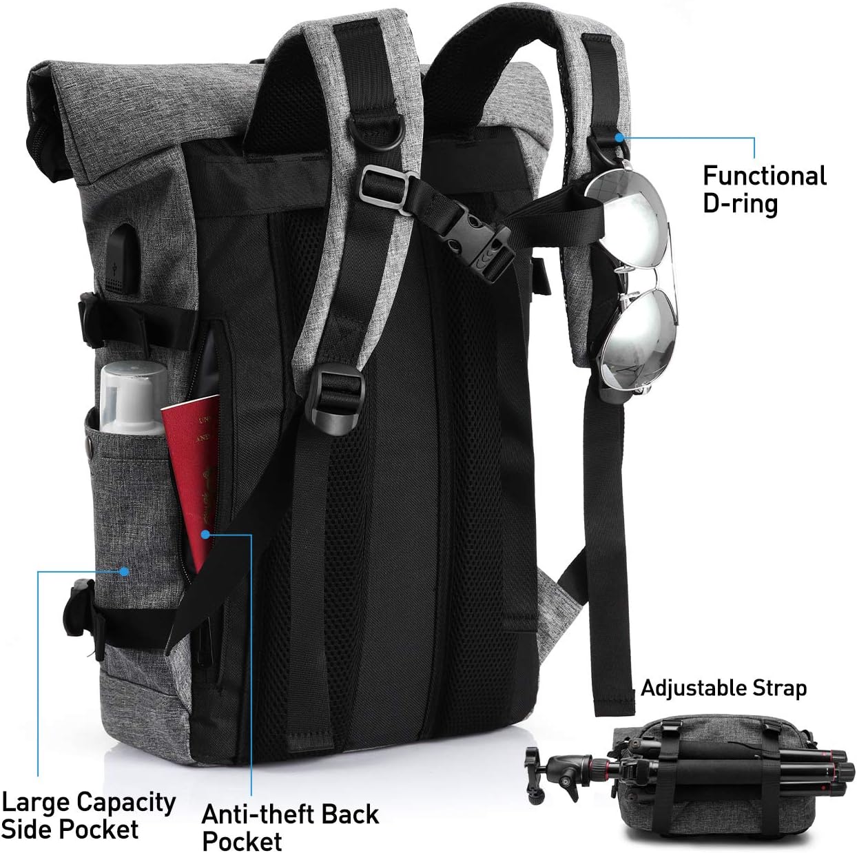 • 【Anti-Diebstahl-Rucksack】 Rolltop rucksack. Volle Reissverschlüsse plus Schliessen zum Aufrollen und Anschnallen. Es verfügt über ein 17-Zoll-Laptopfach mit Riemenschutz, ein geräumiges Hauptfach, 2 Fronttaschen, 2 Seitentaschen, eine