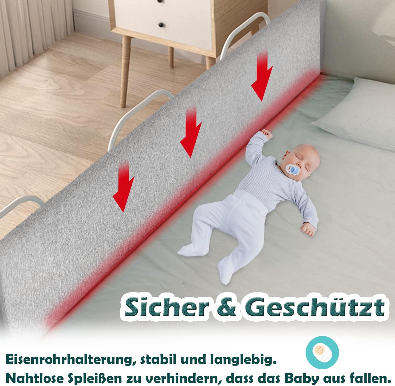 - Sicher und stabil - Aus hochwertigem Stahlrahmen und weicher, umweltfreundlicher EPE-Perlenbaumwolle gefertigt, können Sie die Form des Baby Bettgitter nach Belieben verändern, um den Bedürfnissen verschiedener Altersgruppen gerecht zu werden und