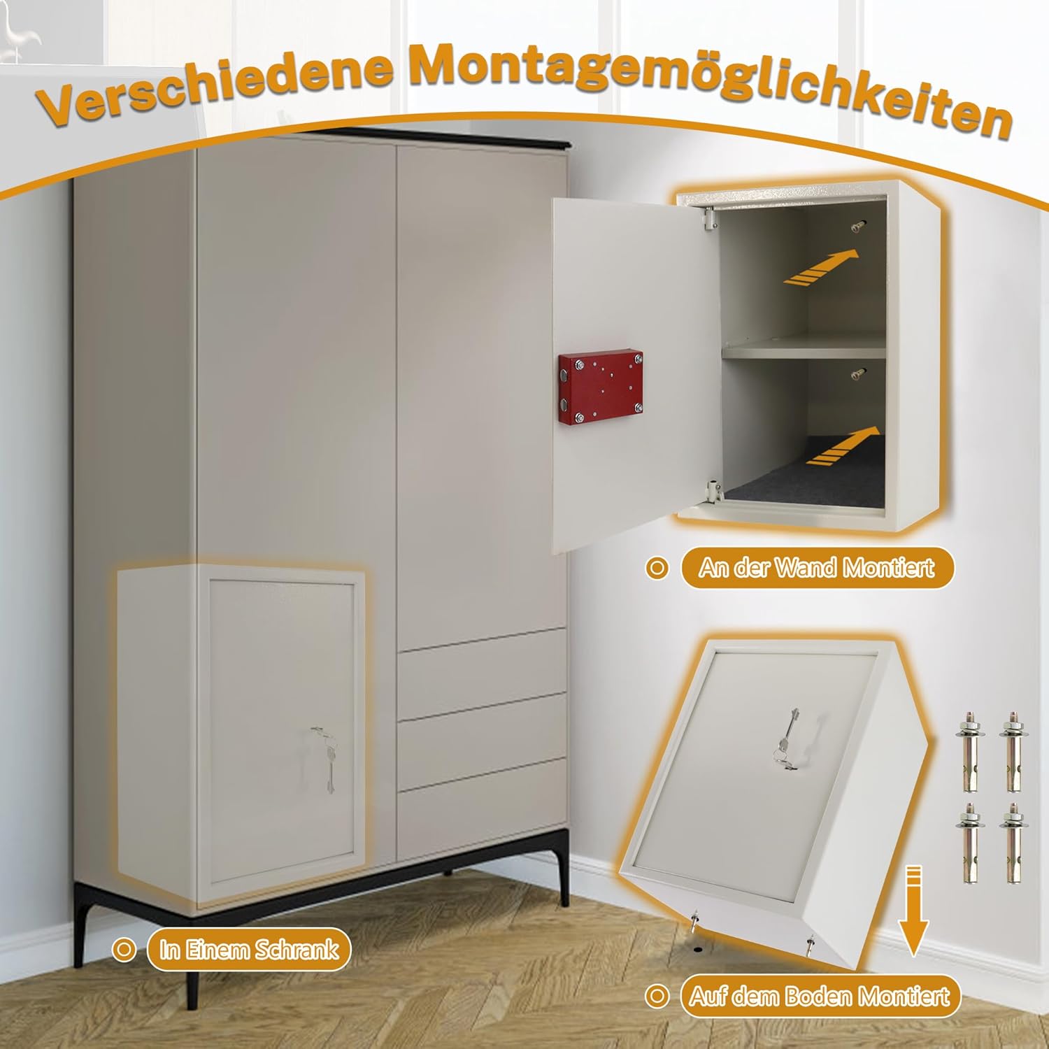 • 🏢 Flexible Nutzung: Dieser Tresor ist äusserst vielseitig und eignet sich perfekt für den Einsatz im Heim- oder Büroumfeld sowie in verschiedenen Geschäftsumgebungen. Sie können ihn flexibel am Boden oder an der Wand montieren.