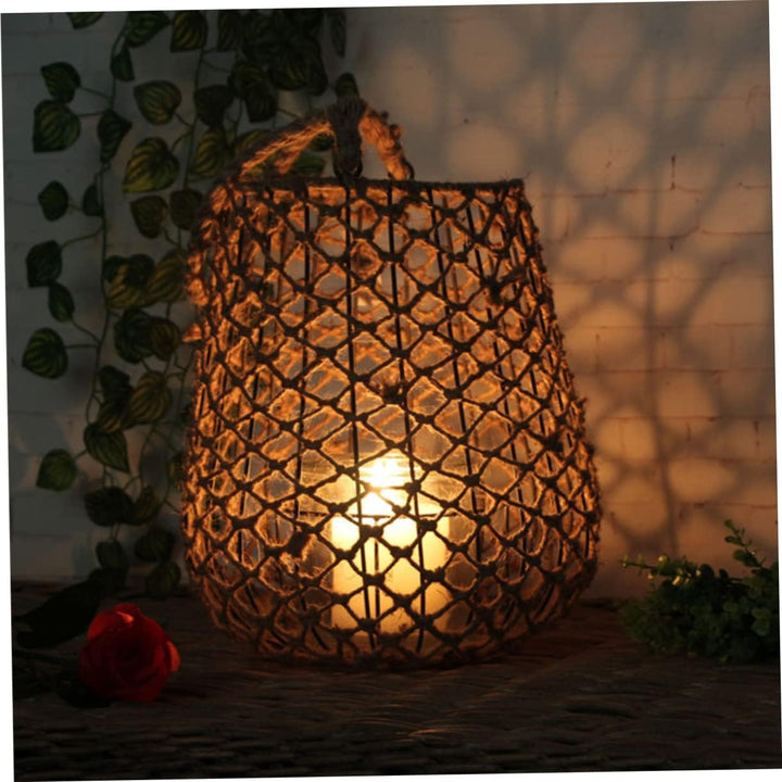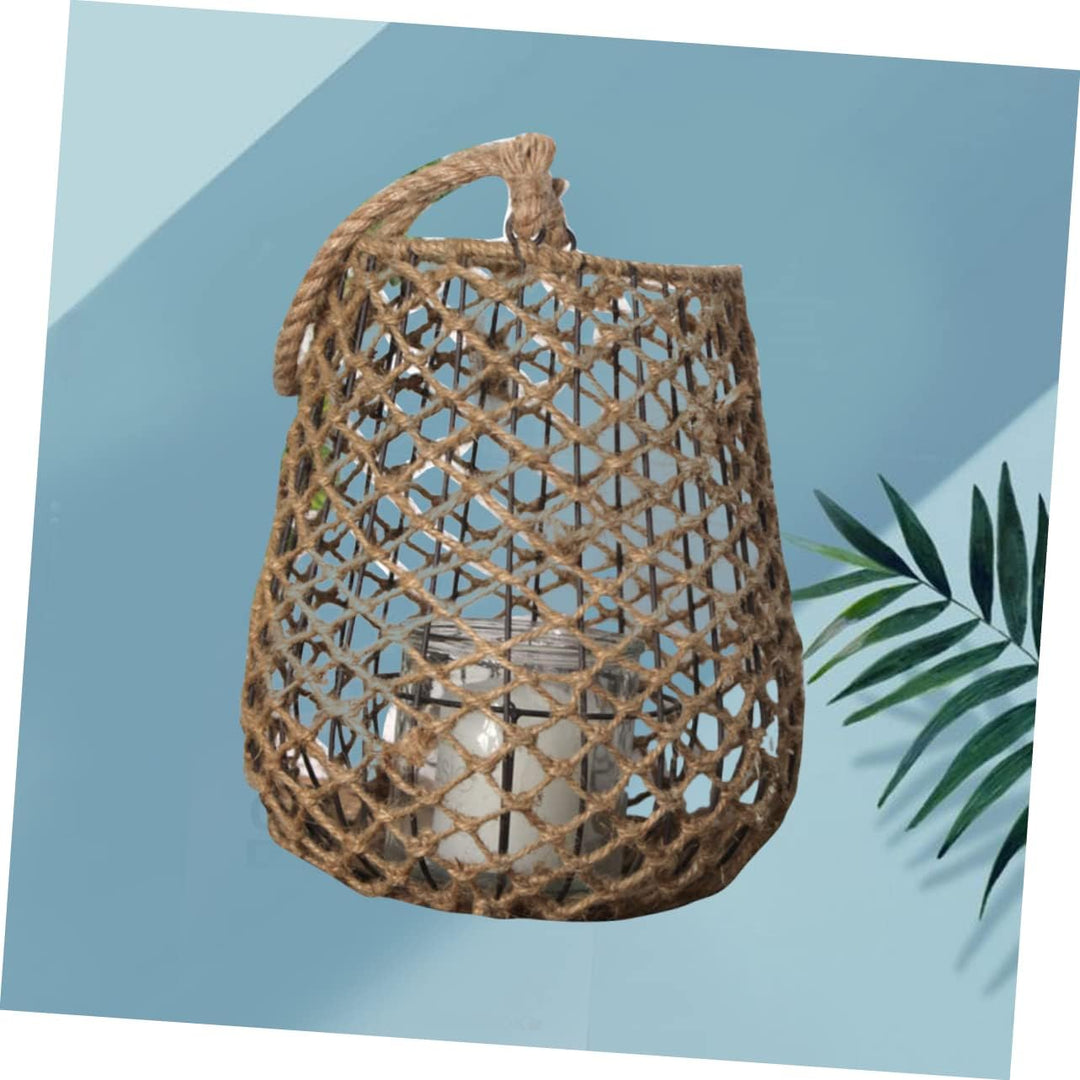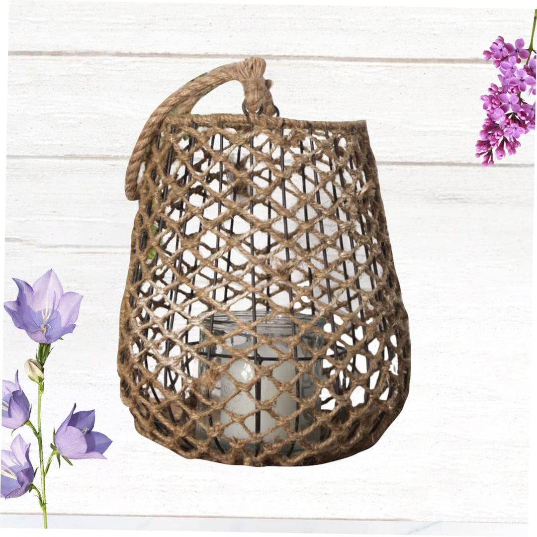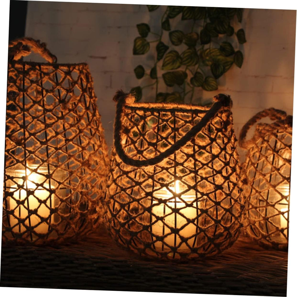 - DUFTKERZENHALTER – DEKORATIVE KERZENLATERNE, RUSTIKALE GEWEBTE SEILLATERNE, VINTAGE-Kerzenhalter, rustikales Glas, Teelicht, Lampenschirm, Nachtlampe, Dekoration für Hochzeiten, Terrassenpartys