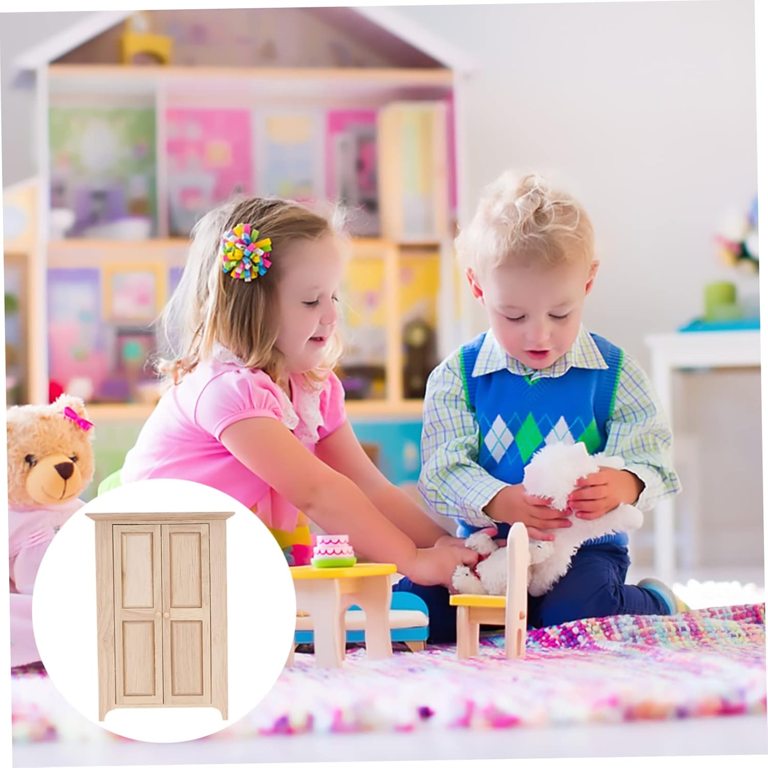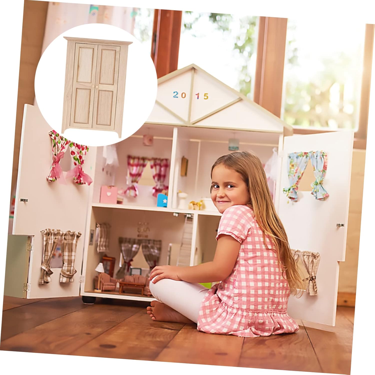- MaterialqualitäT: Gefertigt aus synthetischem material in beige, verbindet dieses puppenhaus kleiderschrank holz langlebigkeit mit einem natürlichen holz-look, passend zu verschiedenen puppenhausmöbeln und miniatur möbeln