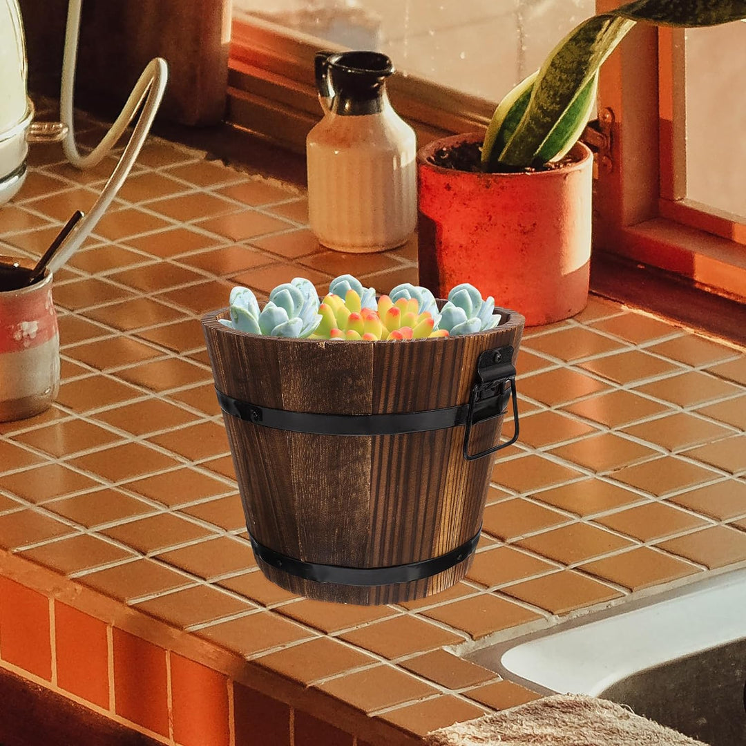 - Es wird aus gutem Material hergestellt, langlebig und praktisch für dauerhafte Verwendung. Holzfass Blumentöpfe